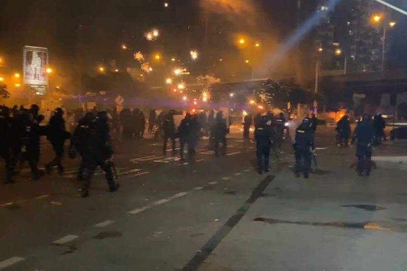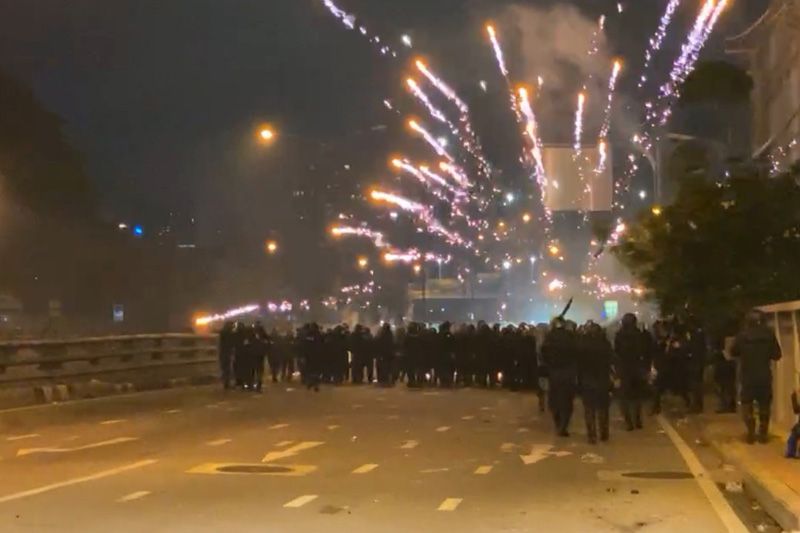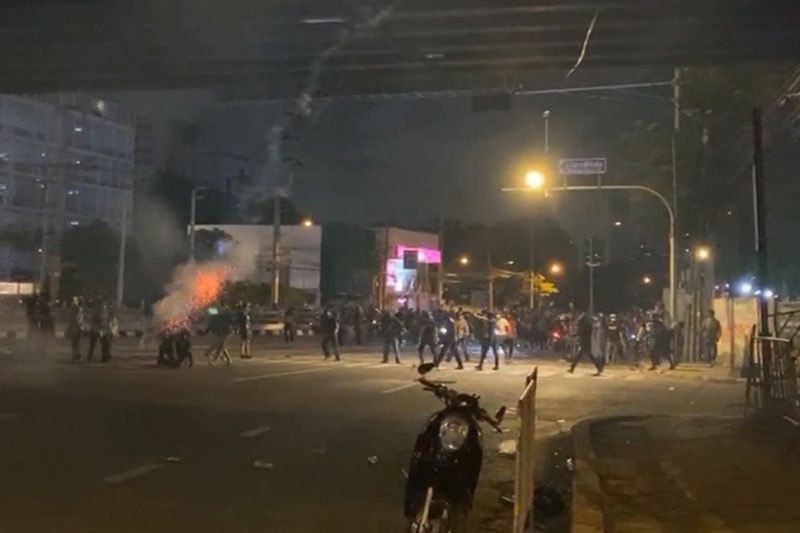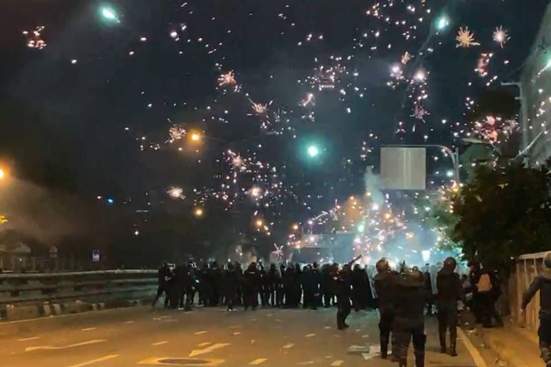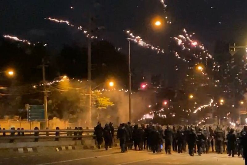 จากนั้น เวลา 19.30 น.มวลชนจุดพลุไฟใส่เจ้าหน้าที่ตำรวจบนทางด่วนโต้กลับแก๊สน้ำตา ล่าสุดเวลา 19.50 น.เจ้าหน้าที่ตำรวจควบคุมฝูงชนตั้งแถวเรียงหน้ากระดานไล่กระชับพื้นที่เข้าสลายการชุมนุม ขณะเดียวกันมวลชนได้ตอบโต้ด้วยการยิงพลุไฟใส่เข้าหน้าที่เป็นระยะ (อ่าวข่าวที่เกี่ยวข้อง : 'เต้น'กล่อมม็อบอีกรอบ! บอกจนท.เตรียมเคลียร์พื้นที่ ไม่คุ้มเสี่ยง-ถอยออกได้แล้ว)