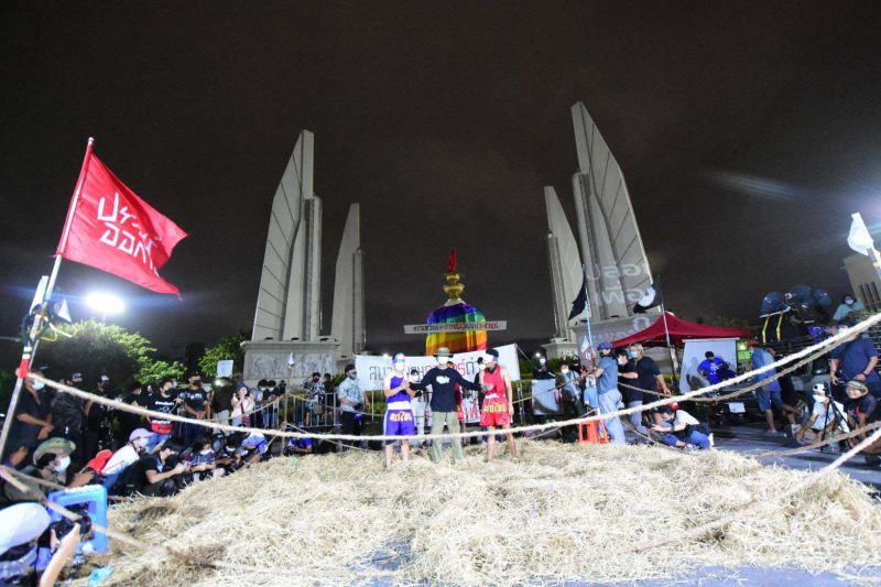 28 สิงหาคม 2564 บรรยากาศที่อนุสาวรีย์ประชาธิปไตย หลังกลุ่มทะลุฟ้านัดหมายทำกิจกรรมชุมนุมใช้ชื่อว่า “ความหวังและการต่อสู้ของประชาชน” เพื่อเรียกร้องให้พล.อ.ประยุทธ์ จันทร์โอชา นายกรัฐมนตรีลาออกจากตำแหน่ง โดยจัดชุมนุมเป็นแบบกีฬาสี ใช้พื้นที่โดยรอบอนุสาวรีย์ฯแบ่งเป็นส่วนเวทีมวย ลานสเก็ต ลานแสดงผลงานศิลปะ และเวทีปราศรัย ทั้งนี้ทางผู้จัดงานมีการยืนยันว่าจะไม่มีการเคลื่อนขบวนไปที่อื่น