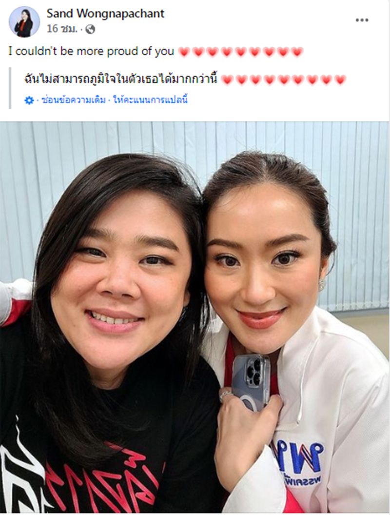 วันที่ 29 ตุลาคม 2564 นางสาวชยิกา วงศ์นภาจันทร์ ลูกสาว นางเยาวเรศ ชินวัตร น้องสาวนายทักษิณ ชินวัตร สมาชิกพรรคเพื่อไทย โพสต์ข้อความผ่านเฟซบุ๊ก Sand Wongnapachant ระบุว่า "I couldn't be more proud of you "