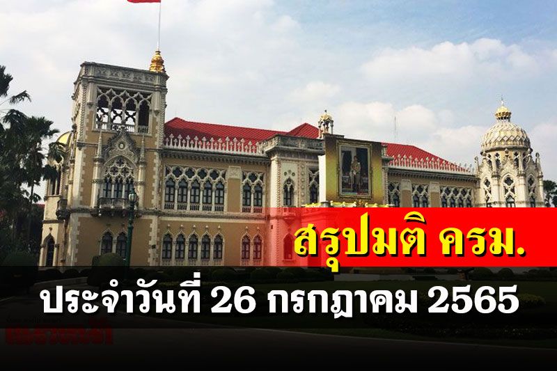 เมื่อเวลา 09.00 น.วันที่ 26 กรกฎาคม 2565 พล.อ.ประยุทธ์ จันทร์โอชา นายกรัฐมนตรี เป็นประธานการประชุมคณะรัฐมนตรี (ครม.) ณ ห้องประชุม 501 ตึกบัญชาการ 1 ทำเนียบรัฐบาล ซึ่งสรุปสาระสำคัญดังนี้