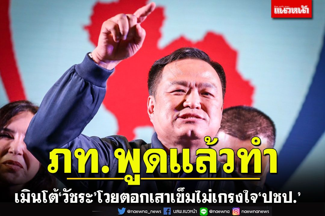 เมื่อถามถึงกรณีที่นายวัชระ เพชรทอง อดีตส.ส.บัญชีรายชื่อ พรรคประชาธิปัตย์ วิจารณ์การหาเสียงที่ จ.สงขลาว่าจะตอกเสาเข็มสร้างความเจริญและเพิ่มจำนวนส.ส.ในภาคใต้หลายที่นั่ง ว่าเป็นการไม่เกรงใจพรรคประชาธิปัตย์นั้น นายอนุทิน กล่าวว่า “ไม่มีประเด็น ไม่มีคำตอบครับ”