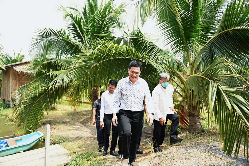 ‘จุรินทร์’โชว์ฝีมือปีนต้นมะพร้าว พร้อมเปิดศูนย์ทำน้ำตาลมะพร้าวน้ำหอม เล็งทำสัญญาซื้อล่วงหน้า มะพร้าวน้ำหอม-ลำไยพวงทองบ้านแพ้ว
