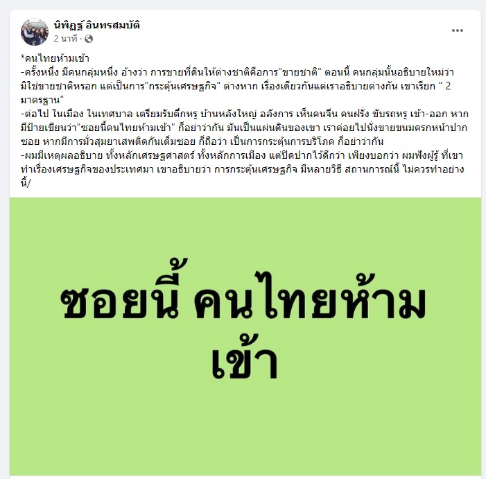 2 มาตรฐานขายที่ดินให้ต่างชาติ อย่าว่ากันเมื่อถึงวัน‘ซอยนี้คนไทยห้ามเข้า’