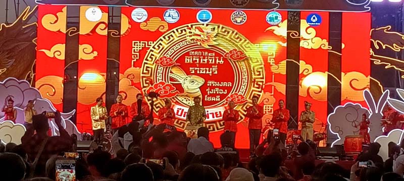จากนั้น พล.อ.ประยุทธ์ กล่าวเปิดงานเทศกาลตรุษจีน ตอนหนึ่งว่า สวัสดีพี่น้องชาว จ.ราชบุรี ประกอบด้วยหลายส่วนหลายฝ่ายที่มาพร้อมเพียงที่นี้ ได้แสดงถึงความรัก ความสามัคคีในการที่จะทำให้จังหวัดของเรา ประเทศของเรา มีความสุขในช่วงวันตรุษจีน ซึ่งเป็นเทศกาลสำคัญของประเทศไทย วันนี้ต้องขอบคุณที่ได้รับเกียรติจากอุปทูตสาธารณรัฐประชาชนจีน ประจำประเทศไทย วันนี้เป็นผู้แทนในการนำกระต่าย ซึ่งเป็นสัญลักษณ์ของตรุษจีนมาให้ตนในวันนี้ และนำความปรารถนาดีจากประเทศจีน และนายกรัฐมนตรีจีนและภรรยามาถึงรัฐบาล ซึ่งนายกรัฐมนตรีและประชาชนชาวไทย ทราบดีอยู่แล้วว่าเราเป็นมิตรกันมายาวนาน จริงๆ แล้วครบ 48 ปีในทางการทูต ซึ่งจริงๆ แล้วหลายร้อยปี