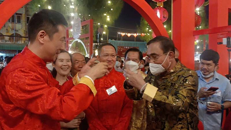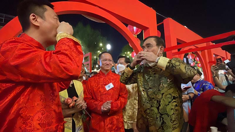 ทั้งนี้ ช่วงท้าย พล.อ.ประยุทธ์ กล่าวอวยพรเทศกาลตรุษจีน เป็นภาษาจีนว่า "ซินเจิ้งหรูอี้ ซินเหนียนฟาไฉ" สุขสมหวังและร่ำรวยตลอดปี จากนั้น พล.อ.ประยุทธ์ เดินชมบูธร้านอาหารภายในงาน โดยมีประชาชนส่งเสียงเชียร์ "นายกฯ สู้ๆ" และขอเข้ามาถ่ายรูปตลอดทาง ผู้สื่อข่าวรายงานว่า เมื่อนายกฯ เดินมาถึงซุ้มชงชาจีน พร้อมกล่าวว่า "เจี๊ยะเต๊" และได้เดินเข้าไปชิมชาอู่หลง และกล่าวว่า "หอมมาก" จากนั้นหันหลังไปเชิญอุปทูตจีนประจำประเทศไทย ให้มาชิมชาจีนด้วยกัน ก่อนกล่าวว่า "มาชนจอกกันหน่อย เพื่อสัมพันธไมตรี"