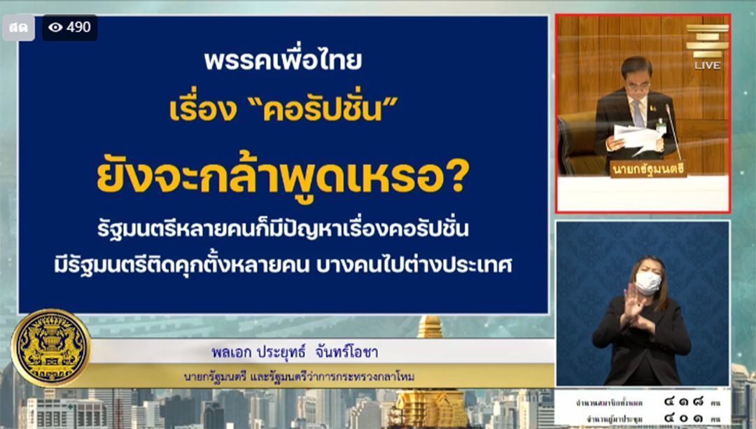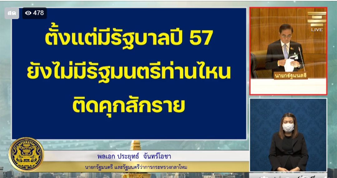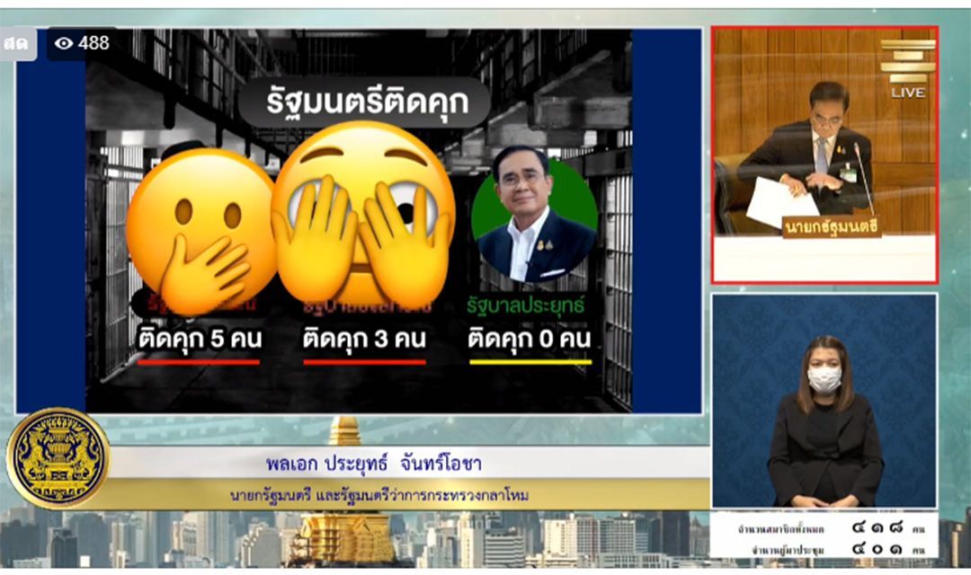 16 ก.พ.2566 หลังจากพล.อ.ประยุทธ์ จันทร์โอชา นายกรัฐมนตรี และรมว.กลาโหม ลุกขึ้นชี้แจงในการอภิปรายวาระญัตติขอเปิดอภิปรายทั่วไปเพื่อซักถามข้อเท็จจริง และเสนอแนะปัญหาต่อคณะรัฐมนตรี (ครม.) แบบไม่ลงมติ ตามรัฐธรรมนูญมาตรา 152 โดยในช่วงหนึ่งที่พล.อ.ประยุทธ์ อภิปรายชี้แจง ได้มีการทำสไลด์ขึ้นจอระบุข้อความ อาทิ “รัฐบาลนี้ไม่มีขายบ้านแถมสัญชาติ” ที่ชัดเจนที่สุดคือ ข้อความระบุว่า “พรรคเพื่อไทย เรื่อง คอร์รัปชั่น ยังจะกล้าพูดหรอ? รัฐมนตรีหลายคนก็มีปัญหาคอร์รัปชั่น มีรัฐมนตรีหลายคน บางคนไปต่างประเทศ” โดยพล.อ.ประยุทธ์ กล่าวเสริมว่า “ตั้งแต่รัฐบาลปี2557ของผมนั้น ยังไม่มีรัฐมนตรีท่านไหนติดคุกสักราย นี่คือข้อเท็จจริง” จนกลายเป็นประเด็นร้อนแรงทางการเมืองนั้น (อ่านข่าวที่เกี่ยวข้อง : 'บิ๊กตู่'ขุดปม'คนแดนไกล-รมต.ติดคุก-ขายบ้านแถมสัญชาติตู้ห่าว'เชือด'พท.'กลางสภาฯ)