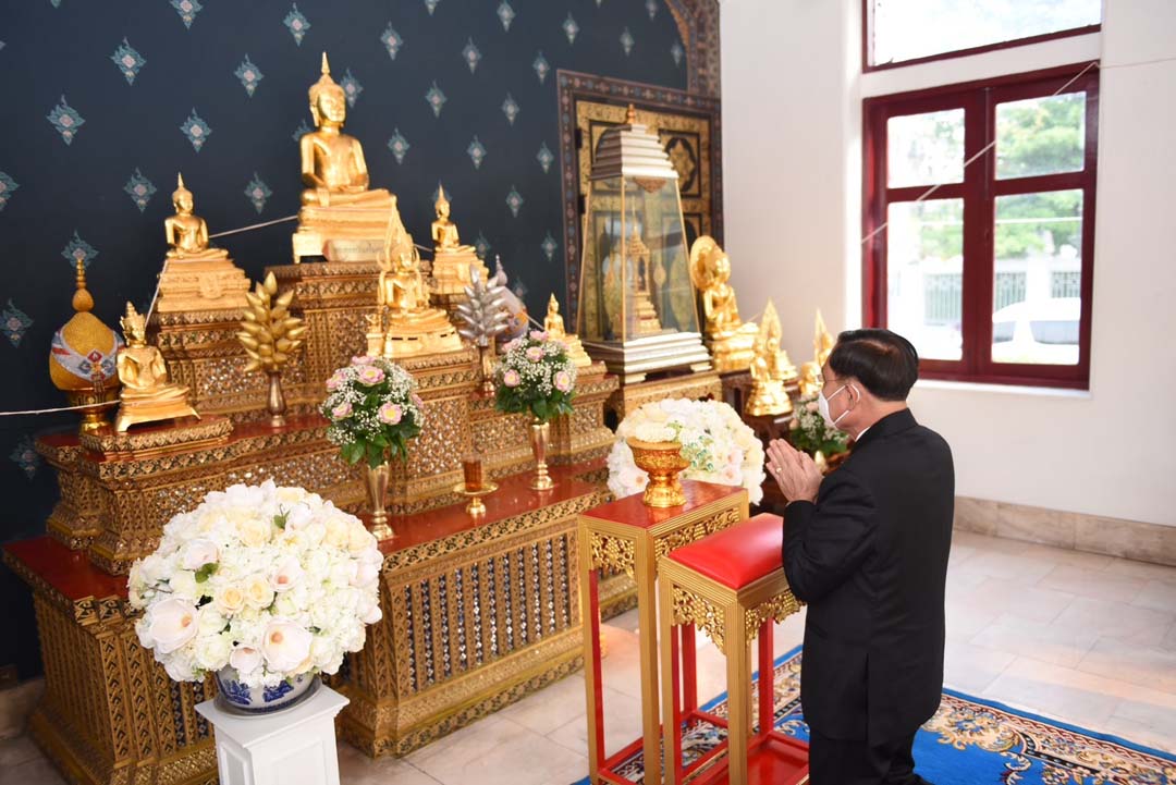 โดย นายกฯ เข้าสักการะพระพุทธรูปบนหอพระพุทธรูป และถวายพวงมาลัย พร้อมใส่บาตรประจำวันเกิด จากนั้นทำพิธีสักการะองค์พระหลักเมือง ภายในอาคารศาลหลักเมือง พร้อมถวายผ้าตาดและถวายพวงมาลัย ก่อนที่จะทำพิธีสักการะเทพารักษ์ทั้ง 5 บนอาคารเทพารักษ์ จากนั้น เติมน้ำมันตะเกียงพระประจำวันเกิด (วันเสาร์) ครึ่งเหยือกและเติมที่ตะเกียงสะเดาะเคราะห์ครึ่งเหยือกที่เหลือ จากนั้น นายกฯ จุดธูปเทียนบนโต๊ะบวงสรวง ปักธูปหางที่เครื่องบวงสรวง ก่อนที่โหรหลวงอ่านโองการบวงสรวงองค์พระหลักเมือง