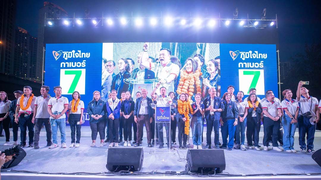 เมื่อเวลา 17.40 น.วันที่ 12 พฤษภาคม 2566 ผู้สื่อข่าวรายงานว่า พรรคภูมิใจไทย (ภท.) ได้จัดเวทีปราศรัยใหญ่บริเวณลานหน้าห้างสรรพสินค้าโชว์ดีซี ถ.พระราม 9 นำโดย นายอนุทิน ชาญวีรกูล หัวหน้าพรรคภูมิใจไทย และแคนดิเดตนายกรัฐมนตรี พร้อมด้วยแกนนำพรรคคนอื่นๆ อาทิ นายศุภชัย ใจสมุทร นายทะเบียนพรรค น.ส.ศุภมาส อิศรภักดี ผู้สมัคร ส.ส.บัญชีรายชื่อ และนายพุทธิพงษ์ ปุณณกันต์ ผอ.การเลือกตั้ง กทม.เพื่อแนะนำตัวผู้สมัคร ส.ส.กทม.ทั้ง 33 เขต พร้อมกับปราศรัยใหญ่เป็นครั้งสุดท้ายก่อนที่จะถึงวันเลือกตั้งในวันที่ 14 พ.ค.นี้