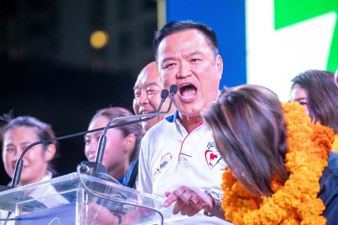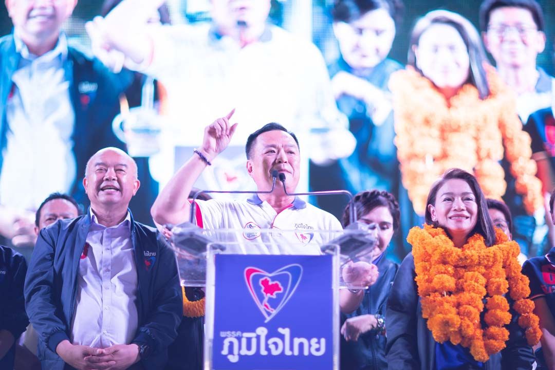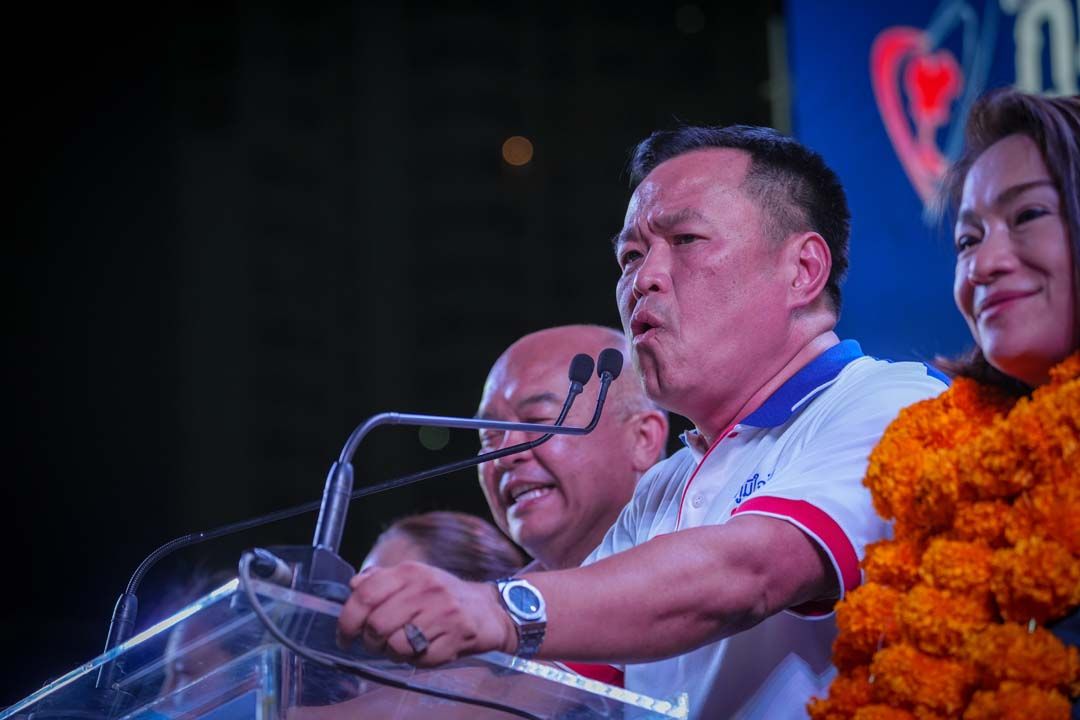 จากนั้น เวลา 18.50 น. นายอนุทิน ขึ้นเวทีปราศรัยโดยกล่าวว่า จากที่ตนต่อสู้มาตลอด เพราะอยากมี ส.ส.กทม.ในครั้งนี้ ตนก็กล้าๆ กลัวๆ มาตลอด แต่เห็นพี่น้องวันนี้แล้วมั่นใจว่า พรรคภูมิใจไทยจะได้เกิดในพื้นที่กทม.แน่นอน ตนจะสวดมนต์ว่าขอให้พี่น้องเข้าคูหากาเบอร์ 7 และกาให้คนของพรรคภูมิใจไทย เราทำงานมา 4 ปีในฐานะพรรคร่วมรัฐบาล ถ้าเรายึดกรอบเดิมๆว่าจังหวัดไหนไม่เลือกจะไม่ทำงานให้ แต่เราคิดตรงกันข้าม เพราะจังหวัดไหนไม่เลือกยิ่งต้องทำงานให้เขาเลือกเราจนได้ เรายึดคติตื๊ดครองโลก ตื๊อด้วยการทำงาน ไม่ใช่ตื๊อด้วยการด่าทอต่อว่าพรรคอื่น
