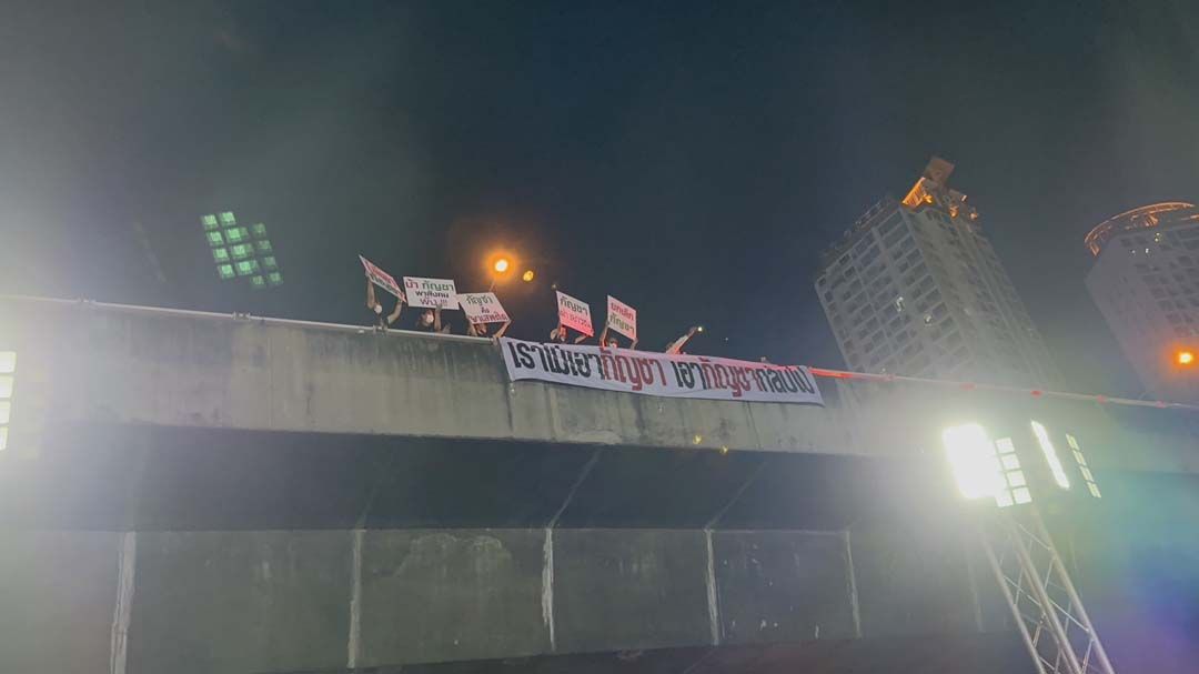 จากนั้น 19.15 น. เจ้าหน้าตำรวจเข้าเจรจาให้นายชูวิทย์ และทีมงานออกจากบริเวณทางด่วนเนื่องจากกีดขวางการจราจร ซึ่งทันทีที่นายชูวิทย์เคลื่อนตัวออกไป นายอนุทิน ก็ตะโกนว่า "ออกไปไปไกลๆ" เช่นเดียวกับประชาชนที่มาฟังปราศรัยก็โห่ไล่ พร้อมตะโกนว่า "ไม่แน่จริงนี่หว่า ถ้าแน่จริงให้ลงมาข้างล่าง"