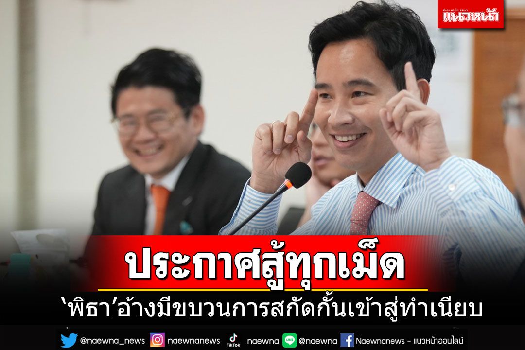 “พิธา”ประกาศลั่นพร้อมสู้ทุกข้อกล่าวหา อ้างมีคนส่งข้อมูลหลักฐานความไม่ชอบมาพากลมาให้เรื่อยๆ บอกเป็นฉากทัศน์ที่คิดเอาไว้อยู่แล้วว่าจะมีขบวนการสกัดกั้นไม่ให้เข้าสู่ทำเนียบรัฐบาล พร้อมมั่นใจ ม.151 ไม่ได้เป็นอุปสรรคที่จะเข้าสู่กระบวนการในการโหวตเป็นนายกรัฐมนตรีคนที่ 30 งัดเคส"ธนาธร"ตอบโต้ข้อมูล"วิษณุ"แม้หยุดปฏิบัติหน้าที่ยังถูกเสนอชื่อเป็นนายกฯได้