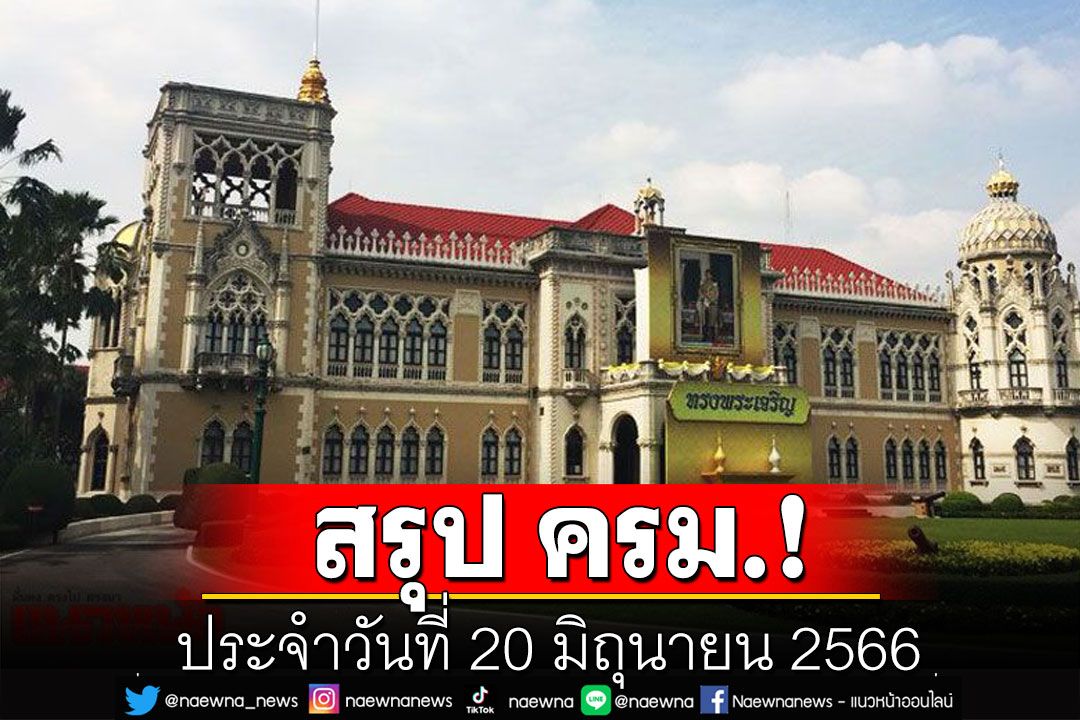 วันที่ 20 มิถุนายน 2566 เวลา 09.00 น. พลเอก ประยุทธ์ จันทร์โอชา นายกรัฐมนตรี เป็นประธานการประชุมคณะรัฐมนตรี ณ ตึกสันติไมตรี (หลังนอก) ทำเนียบรัฐบาล ซึ่งสรุปสาระสำคัญดังนี้