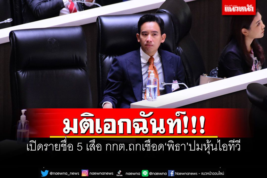 เมื่อวันที่ 12 กรกฎาคม 2566 สำนักงานคณะกรรมการการเลือกตั้ง (กกต.) ได้ออกเอกสารเผยแพร่ผลการประชุม กกต.ในวันนี้ ซึ่งมีการพิจารณาวาระสำคัญ และมีมติ กกต.ส่งเรื่องให้ศาลรัฐธรรมนูญเพื่อพิจารณาวินิจฉัยสมาชิกภาพ ส.ส.ของ นายพิธา ลิ้มเจริญรัตน์ ส.ส.แบบบัญชีรายชื่อ เป็นผู้ถือหุ้นบริษัท ไอทีวี มีเหตุสิ้นสุดลงตามรัฐธรรมนูญแห่งราชอาณาจักรไทย พ.ศ.2560 มาตรา 101(6) ประกอบมาตรา 98(3) (ข่าวที่เกี่ยวข้อง : ด่วนที่สุด!!! กกต.เชือด'พิธา'แล้ว มีมติส่งศาลรธน.ฟันพ้นส.ส.เหตุถือหุ้นไอทีวี)