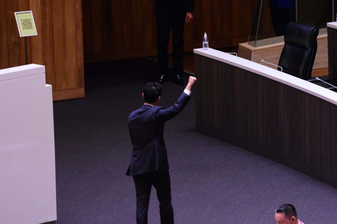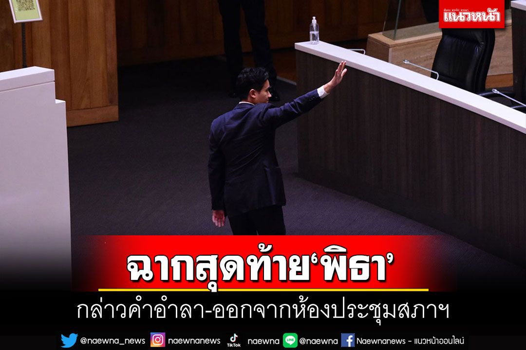 ‘พิธา’ ไม่รอช้า! ชิงลุกขึ้นอ่านคำวินิจฉัยศาลฯสั่งหยุดปฏิบัติหน้าที่กลางสภาฯลั่นประเทศไทยเปลี่ยนไปไม่เหมือนเดิมอีกแล้ว เหลืออีกครึ่งทางชนะ ฝากดูแลปชช. จนกว่าจะพบกันใหม่ ก่อนถอดบัตรส.ส.วาง เพื่อสมาชิกปรบมือเกรียวกราว ชูกำปั้นพร้อมสู้ ก่อนเดินออกจากห้องประชุม