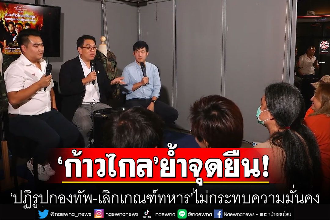 "ก้าวไกล" ชวนคุยชุดกฎหมายปฏิรูปกองทัพ ชี้ความจำเป็นแก้โครงสร้างสภากลาโหม ให้พลเรือนอยู่เหนือกองทัพ ปฏิรูปธุรกิจ-ที่ดินให้โปร่งใสตรวจสอบได้ ย้ำเลิกเกณฑ์ทหารไม่กระทบการรักษาความมั่นคง ประเทศจะมีกำลังพลเพียงพอ-มีประสิทธิภาพ