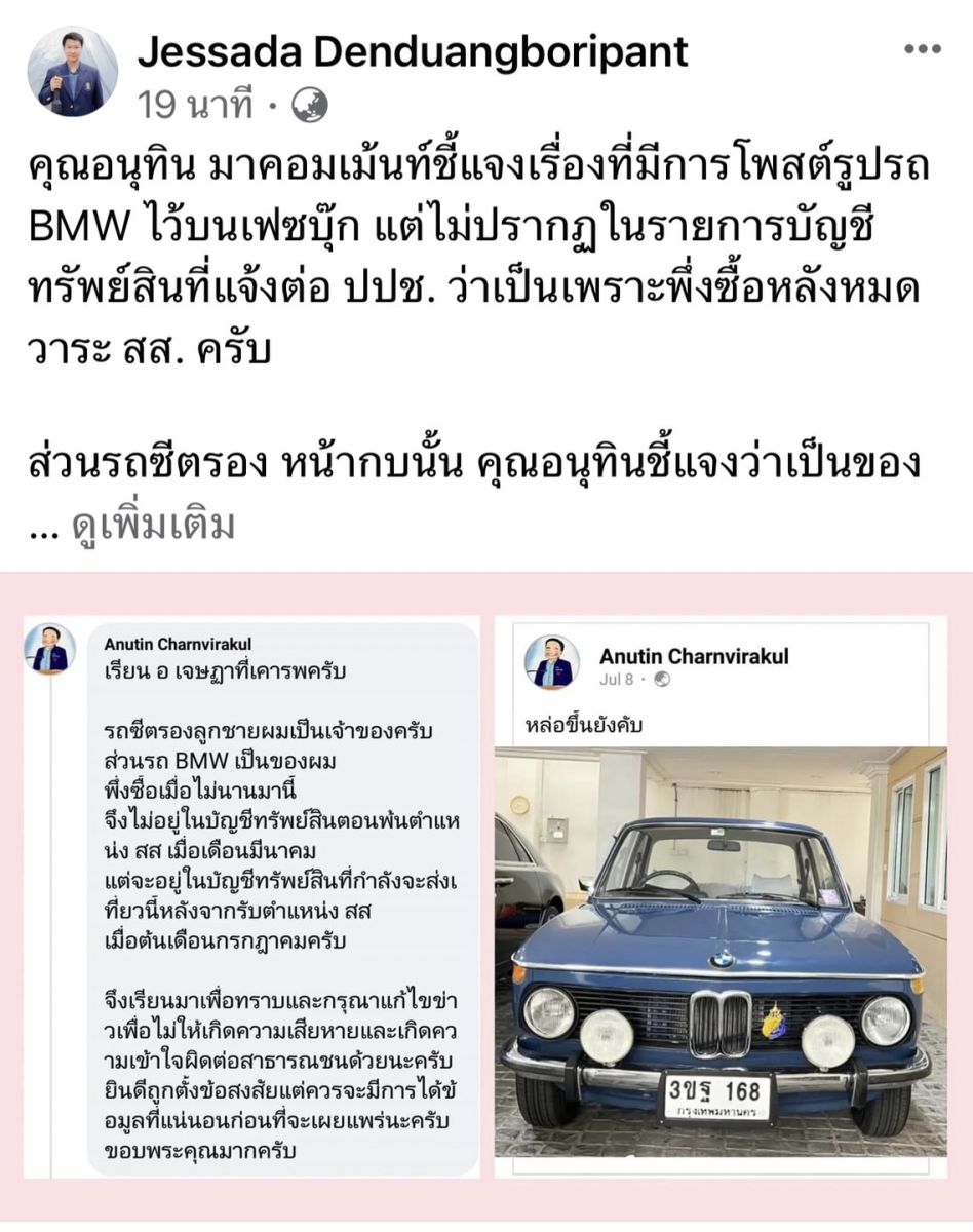 26 ก.ค.2566 ผู้สื่อข่าวรานงานว่า จากกรณี ศ.ดร.เจษฎา เด่นดวงบริพันธ์ อาจารย์ประจำภาควิชาชีววิทยา คณะวิทยาศาสตร์ จุฬาลงกรณ์มหาวิทยาลัย โพสต์เฟสบุ๊ค ส่วนตัวตั้งข้อสังเกต รถคลาสสิก Citron DS 21 รุ่นปี 1972 และ รถ BMW ตามที่ นายอนุทิน ชาญวีรกูล รองนายกฯ และ รมว.สาธารณสุข โพสต์ในเฟสบุ๊คส่วนตัว ไม่ปรากฏในรายการบัญชีทรัพย์สินที่แจ้งต่อคณะกรรมการป้องกันและปราบปรามการทุจริตแห่งชาติ(ป.ป.ช.)นั้น