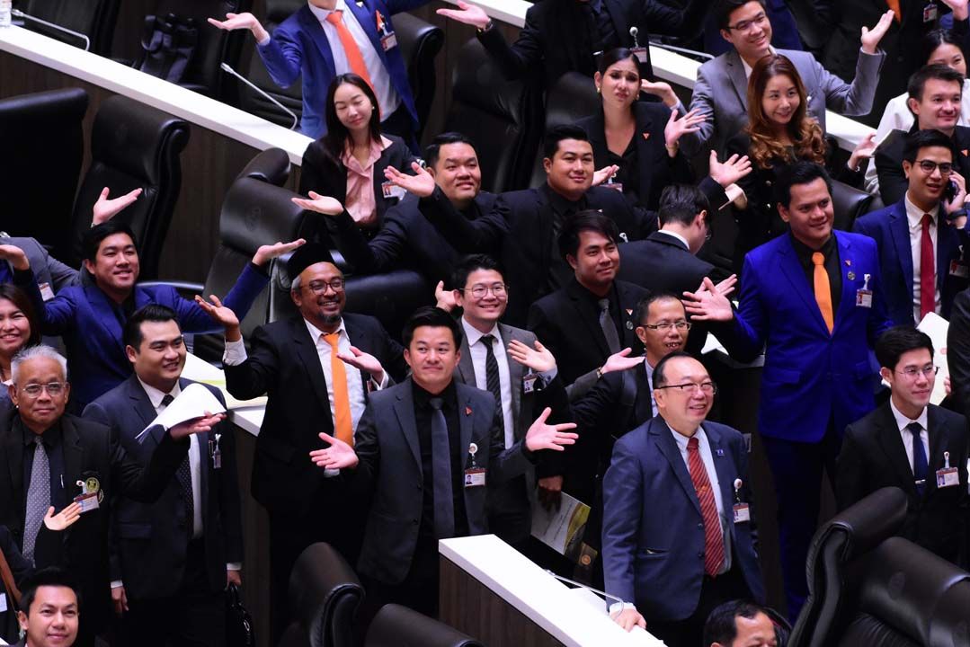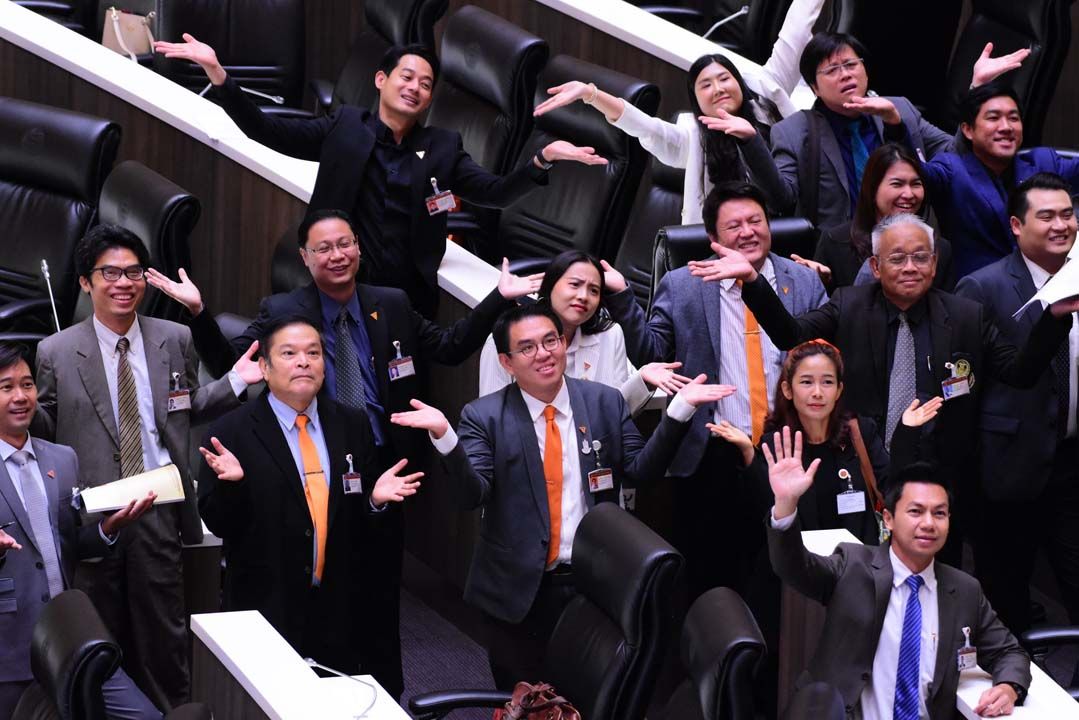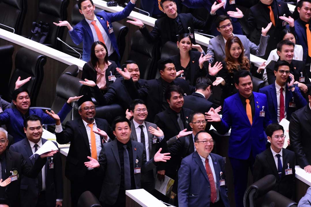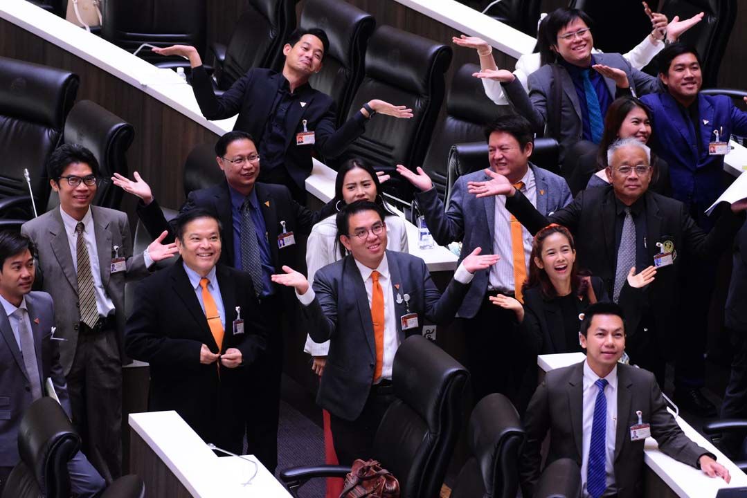 ทั้งนี้ ปรากฏว่าบรรดา สส. พรรคก้าวไกล ซึ่งเป็นกลุ่มที่ยกมือรับรองการเสนอญัตติดังกล่าว ต่างทำท่าทาง หงายมือขึ้น 2 ข้าง เสมอไหล่ พร้อมสีหน้าสุดเซ็ง ที่เกิดการปิดประชุมรัฐสภา