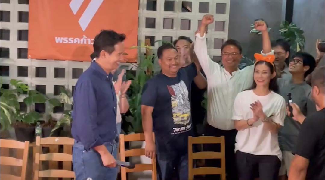 หลังจากที่จบการแถลงข่าวเหล่าด้อมส้มที่มารอต่างเปล่งเสียงตะโกนว่า "ส.ส.ของเรา นายกฯ ของเรา" ลั่นห้องแถลงข่าว