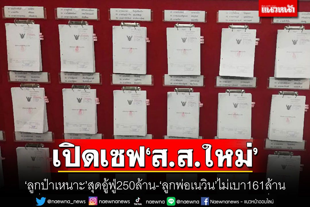 เปิดเซฟส.ส.ใหม่! "สุรเกียรติ"ลูกป๋าเหนาะ สุดอู้ฟู่ 250 ล้าน ปล่อยกู้ 90 ล้าน สะสมทองคำแท่ง 51 บาท / "ไชยชนก"ลูกพ่อเนวิน ไม่เบา 161 ล้าน มีทั้งเบนลี่-ดูคาติ ครอบครองนาฬิกาหรูริชาร์ดมิลล์ 10.5 ล้าน / "นรินทร์"ลูกอำนวย ลพบุรี 20.4 ล้าน ซื้อรถใหม่ฉลองได้เป็น ส.ส.หลังวันเลือกตั้ง ด้าน"พชร"ลูกประเสริฐ 17.5 ล้าน ลงทุนเงินสกุลดิจิตอล ส่วน"มดเล็ก"ลูกสุชาติ 9.2 ล้าน ปืนเพียบ เพิ่งถอยป้ายแดง 5.4 ล้าน