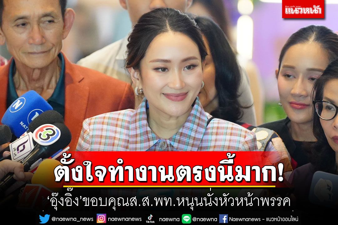"อุ๊งอิ๊ง"ขอบคุณส.ส.เพื่อไทย หนุนชื่อเป็นหัวหน้าพรรค ลั่นตั้งใจทำงานตรงนี้มาก ขอรอประชุมใหญ่ 27 ต.ค.นี้ก่อน