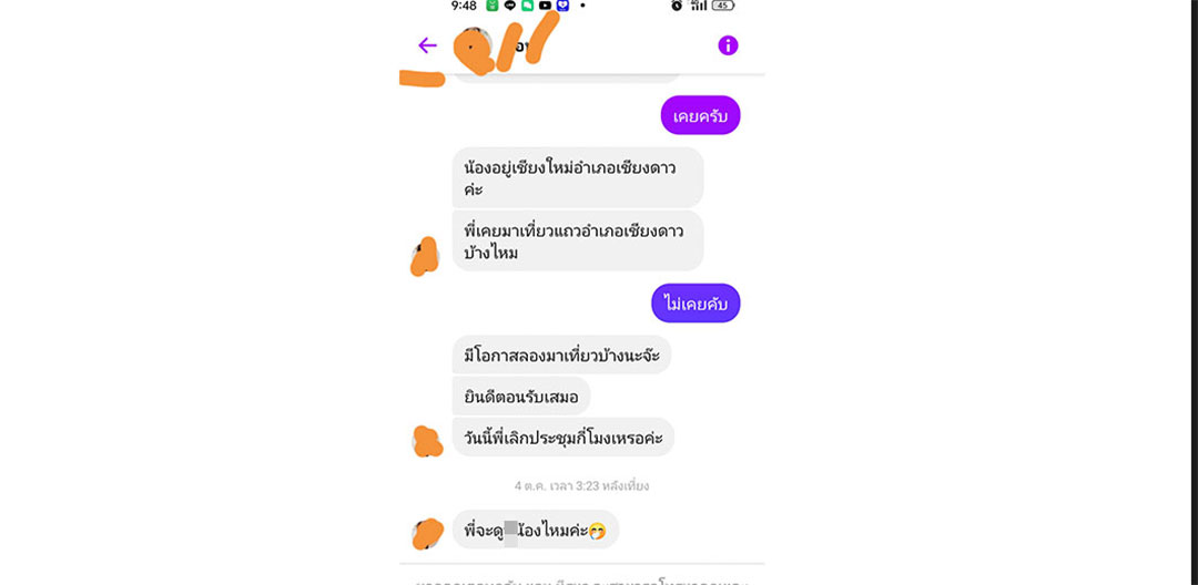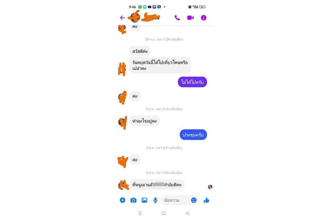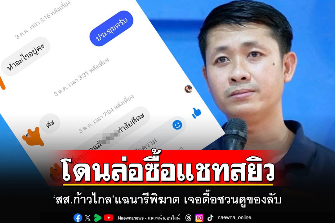 พร้อมแคปชั่นข้อความการสนทนากับสาวปริศนาที่เชื่อว่าเป็นการล่อซื้อแชทสยิวหวังนำมาทำลายชื่อเสียงในภายหลังหรือไม่ โดยข้อความในแชทดังกล่าว จะเริ่มจากทักมาชวนคุยโน่นคุยนี่ สอบถามเรื่องวันหยุด ก่อนจะชวนไปเที่ยวในสถานที่ต่างๆ และลงท้ายด้วยการข้อความสุดสยิวชวนดูของลับ