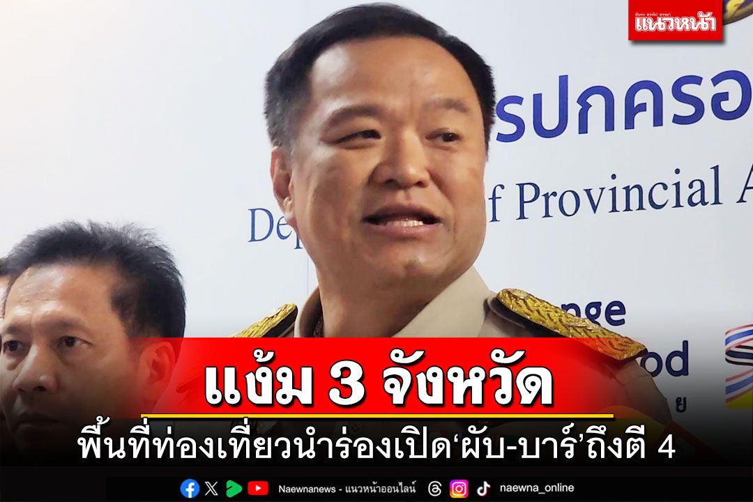 ‘อนุทิน’ขีดเส้น 15 ธ.ค.นี้ รับฟังความคิดเห็นประชาชนในพื้นที่นำร่องเปิด‘ผับ-บาร์’ถึงตี 4 ก่อนชง‘ครม.’เห็นชอบคลอด‘กฎกระทรวง’ หวังกระตุ้นเศรษฐกิจทันช่วงปีใหม่