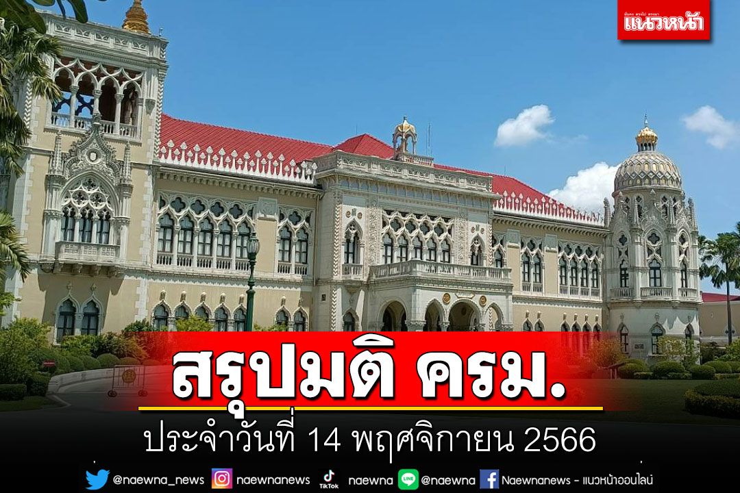 วันนี้ 14 พฤศจิกายน 2566 เวลา 09.00 น. นายภูมิธรรม เวชยชัย รองนายกรัฐมนตรี เป็นประธานการประชุมคณะรัฐมนตรี ณ ห้องประชุม 501 ตึกบัญชาการ 1 ทำเนียบรัฐบาล ซึ่งสรุปสาระสำคัญดังนี้