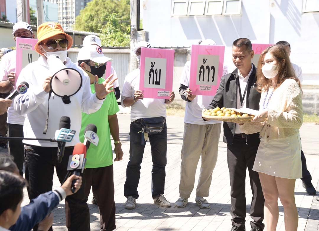 กลุ่มอ้างตัวเป็น"สมาชิกก้าวไกล"บุกมอบส้มช้ำใกล้เน่า-ยื่นร้องเรียนจัดการปลาเน่าในพรรค ย้ำศรัทธายังไม่หมด แต่อยากให้แก้ไขสิ่งที่เสียให้ดี ขู่ถ้ามารอบหน้าลาออกแน่ เลิ่กลั่ก หลังถูกถามมีบัตร-เอกสารแสดงสถานะหรือไม่ อ้างเป็นหัวคะแนนโซเชียลตั้งแต่อนาคตใหม่ ยันไม่ได้มาโจมตี-ดิสเครดิต