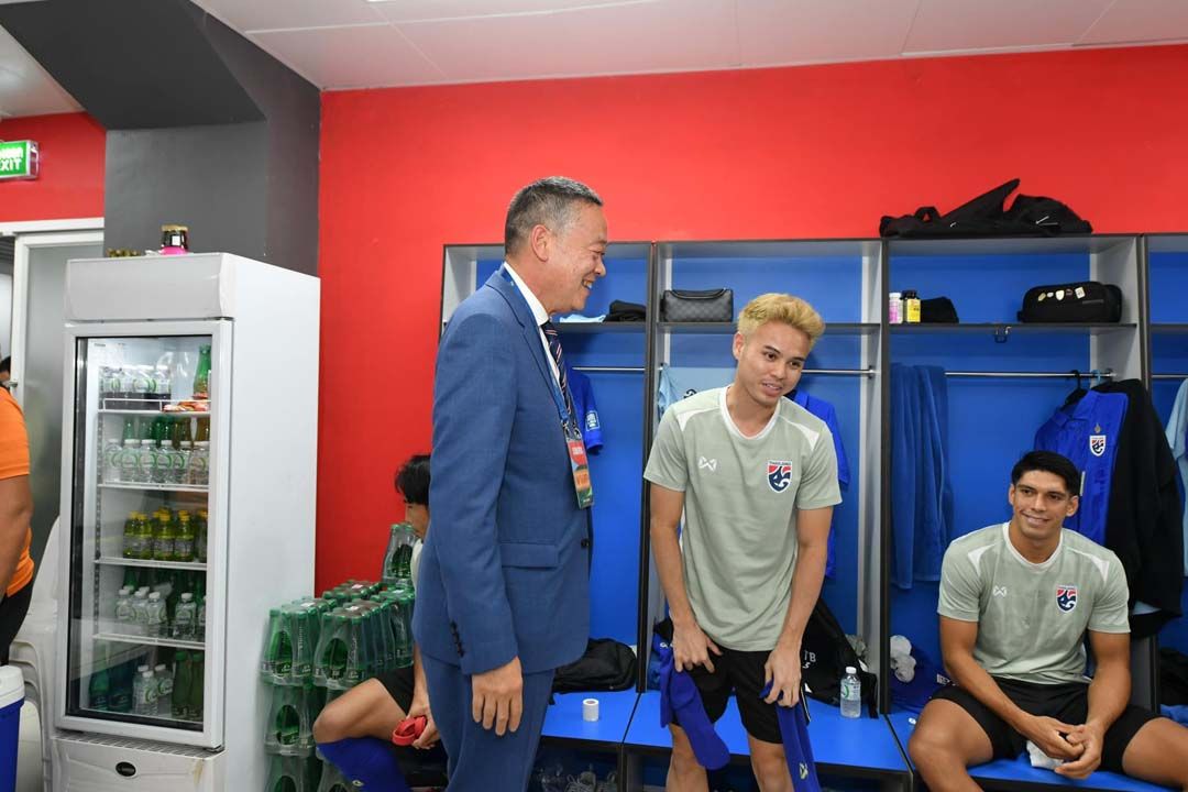"ก่อนการแข่งขันผมจึงแวะมาให้กำลังใจนักกีฬาทุกคนที่ห้องพักนักกีฬาครับ แมตช์ที่ผ่านมาเยี่ยมมาก ๆ และผมเชื่อว่า การแข่งวันนี้ก็จะสุดยอดเช่นเดียวกัน ขอให้ทุกคนทำให้เต็มที่ ผมเชื่อมั่นว่า ผม และประชาชนคนไทยทั้งประเทศ ทั้งในสนาม และนอกสนามหลายแสนคน ส่งใจเชียร์ให้ตลอดการแข่งขันครับ"นายกฯระบุ