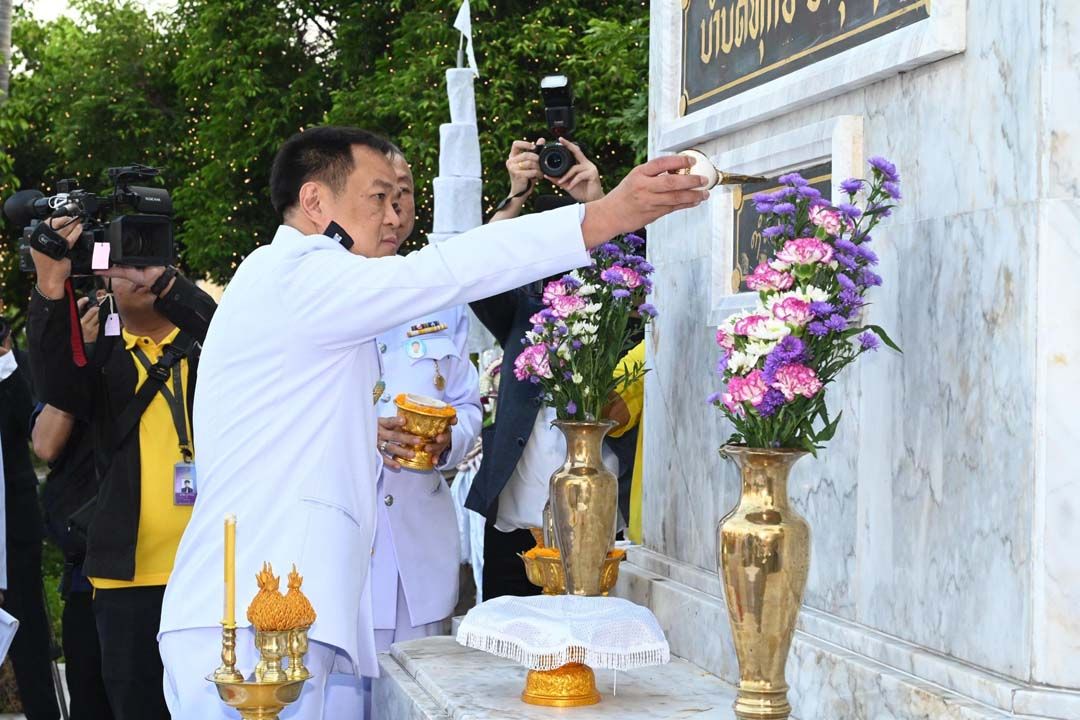 โอกาสนี้ นายอนุทิน นำคณะผู้บริหารระดับสูง สักการะศาลพระชัยมงคล ศาลพระกาฬไชยศรี และสักการะพระอนุสาวรีย์สมเด็จพระเจ้าบรมวงศ์เธอ กรมพระยาดำรงราชานุภาพ โดยหลั่งน้ำจากพระสังข์ที่ป้ายพระนาม “ดำรงราชานุภาพ” เสร็จแล้วเจิม ถวายพวงมาลัย โปรยดอกไม้ และวางพุ่มดอกไม้ถวายสักการะ จุดธูป เทียนที่เครื่องทองน้อย และที่โต๊ะเครื่องสังเวย ผู้บริหารระดับสูงร่วมปักธูปบริวารทั้งหมดที่เครื่องสังเวย โหร พราหมณ์ อ่านคำบวงสรวงเพื่อถวายสักการะ จบแล้ว นายอนุทิน ชาญวีรกูล รองนายกรัฐมนตรีและรัฐมนตรีว่าการกระทรวงมหาดไทย กล่าวคำสดุดี และตรวจเยี่ยมแถวข้าราชการและพนักงานรัฐวิสาหกิจ เป็นอันเสร็จพิธีวางพุ่มดอกไม้ถวายสักการะฯ