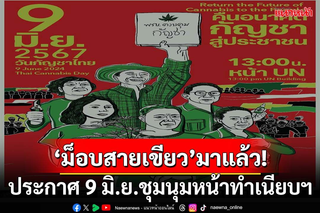 ‘ม็อบสายเขียว’แถลงการณ์ 3 ข้อ 9 มิ.ย.ชุมนุมหน้าทำเนียบฯ ทวงสิทธิกัญชาสู่ปชช.
