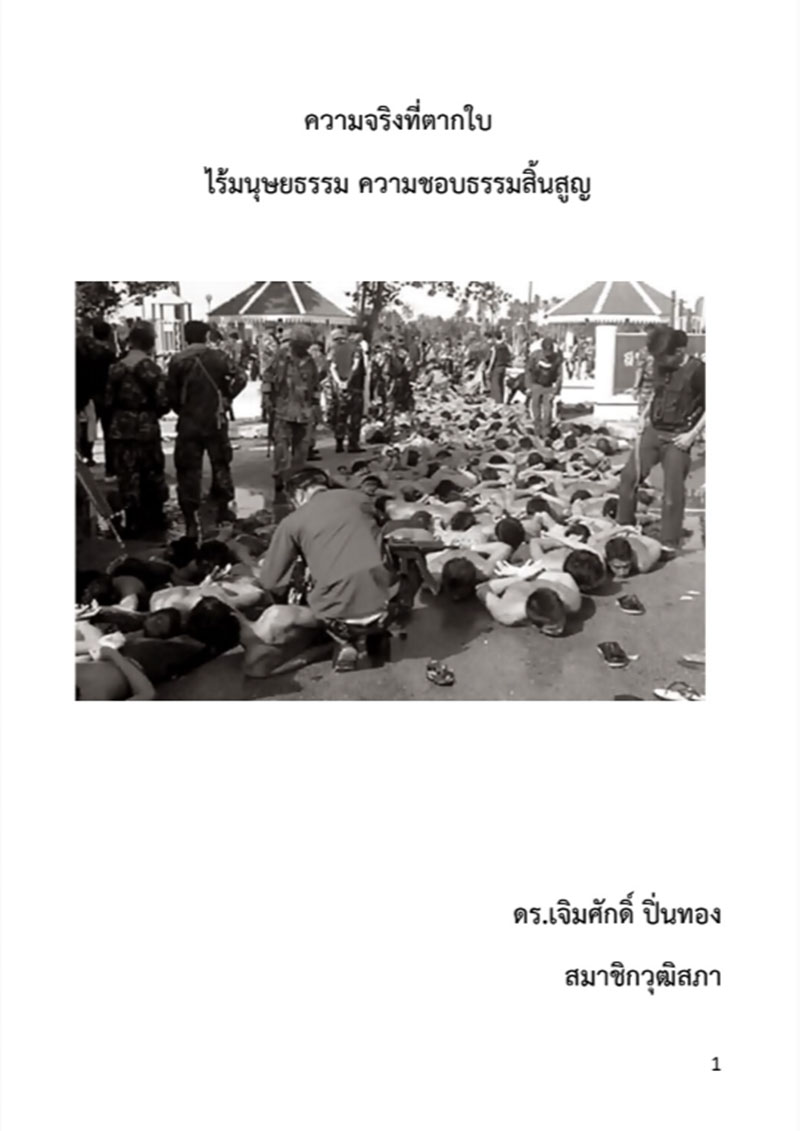 นอกจากนี้ ยังมีการเผยแพร่เอกสารเกี่ยวกับข้อเท็จจริงของเหตุการณ์ดังกล่าว ในหัวข้อเรื่อง ความจริงที่ตากใบ ไร้มนุษยธรรม ความชอบธรรมสิ้นสูญ ซึ่งเขียนโดย ดร.เจิมศักดิ์ ปิ่นทอง อดีตวุฒิสมาชิกปี 2543 คลิกอ่านต้นฉบับได้ที่นี่