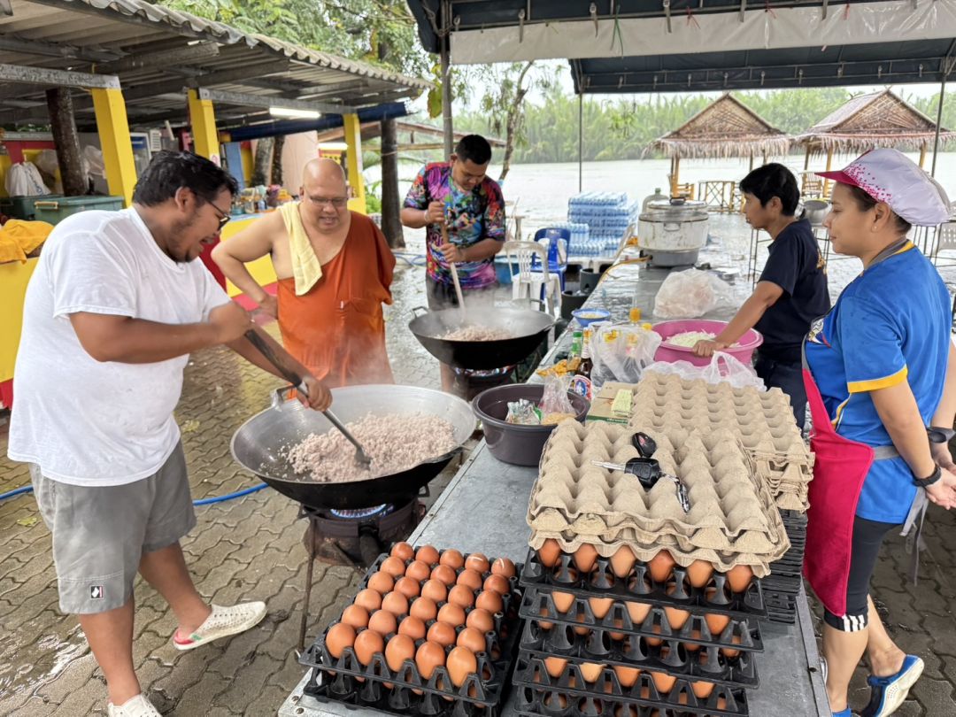 “ขณะนี้ได้ตั้งโรงครัวเพื่อปรุงอาหารสุก กระจายข้าวกล่องไปยังพื้นที่ต่างๆ ทั้งในพื้นที่ อ.ทุ่งสง โดยตั้งอยู่ที่ สำนักงานสส.สุธรรม จริตงาม และ ที่อ.เมืองนครศรีธรรมราช ตั้งอยู่ที่ วัดนางพระยา ต.ปากนคร โดยจะพบว่าประชาชนได้รับกระทบจากน้ำท่วมหนักในหลายตำบล อาทิ ต.เขาโร ต.หนองหงส์ เทศบาลอ.ทุ่งสง และเขตเมืองนครศรีธรรมราช ซึ่งจากประเมินความเสียหายมีประชาชน ประมาณ 200 ครัวเรือนในอ.ทุ่งส่ง ที่ได้รับผลกระทบอย่างหนัก ส่วนอ.เมืองนครศรีธรรมราช ประชาชนได้รับผลกระทบเป็นจำนวนมาก เพราะเป็นพื้นที่เศรษฐกิจ ของจังหวัด ดังนั้นต้องติดตามสถานการณ์ฝนในช่วง 1-2 วันนี้ หากฝนยังตกอีก จะทำให้น้ำเทือกเขาไหลลงสู่พื้นที่ราบ ทำให้มีปริมาณน้ำท่วมขังเพิ่มขึ้นอีก โดยต้องมีการเฝ้าระวังสถานการณ์อุทกภัยน้ำท่วมที่จะยังคงยืดระยะเวลาออกไป ทำให้เราต้องวางแผนช่วยเหลืออย่างต่อเนื่อง” นายสุธรรม กล่าว