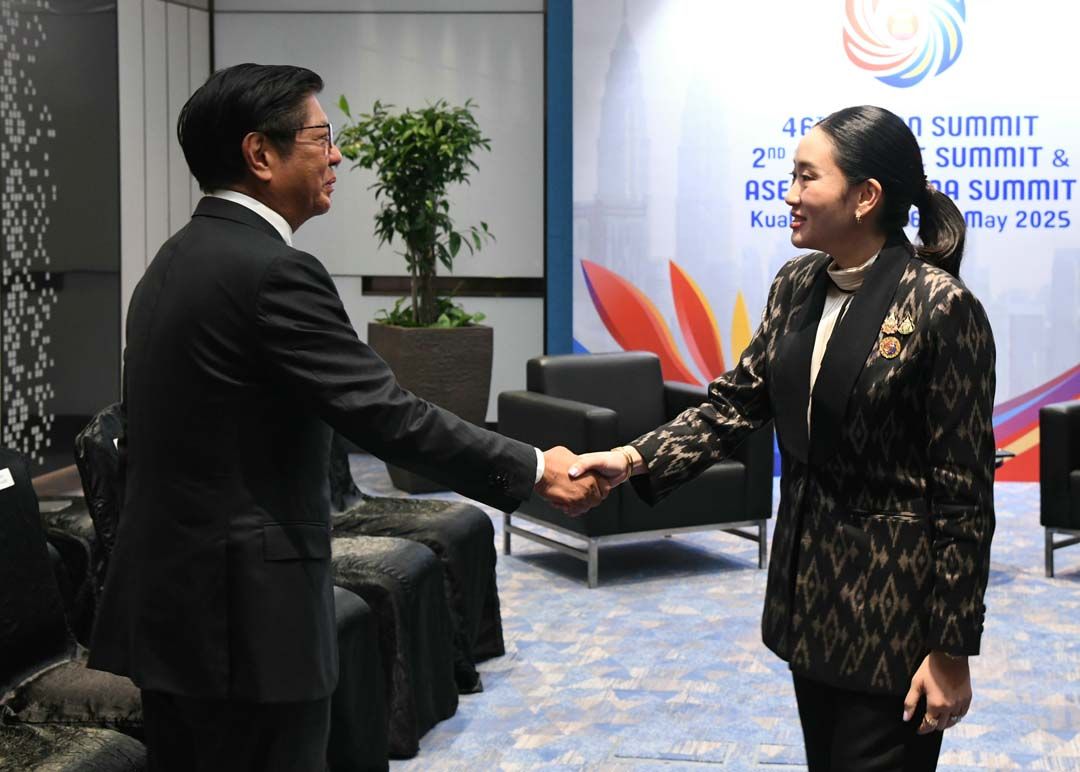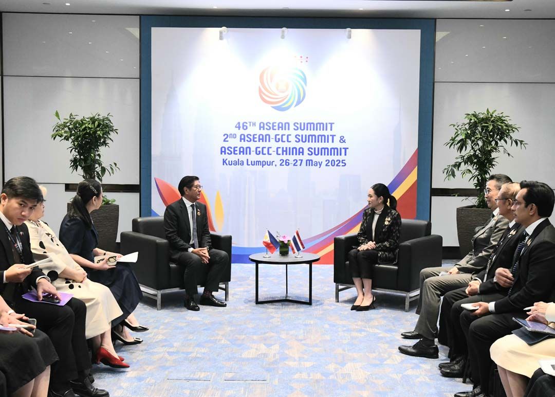 เมื่อวันที่ 26 พฤษภาคม 2568 เวลา 14.30 น.ตามเวลาท้องถิ่น ณ กรุงกัวลาลัมเปอร์ ตรงกับเวลา 13.30 น.ในประเทศไทย ณ ห้อง 406 ชั้น 4 ศูนย์ประชุม Kuala Lumpur Convention Center (KLCC) ประเทศมาเลเซีย น.ส.แพทองธาร ชินวัตร นายกรัฐมนตรี หารือทวิภาคีกับ นายแฟร์ดีนันด์ โรมูอัลเดซ มาร์โคส จูเนียร์ (H.E. Mr. Ferdinand Romualdez Marcos Jr.) ประธานาธิบดีสาธารณรัฐฟิลิปปินส์