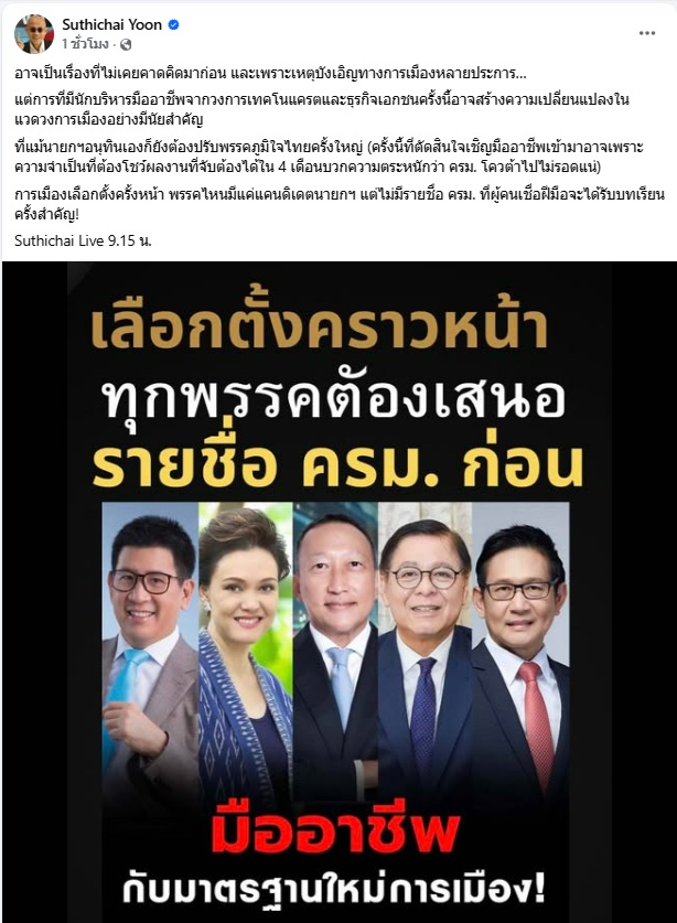1 ตุลาคม 2568 นายสุทธิชัย หยุ่น สื่อมวลชนอาวุโส โพสต์เฟซบุ๊ก Suthichai Yoon ระบุว่า...