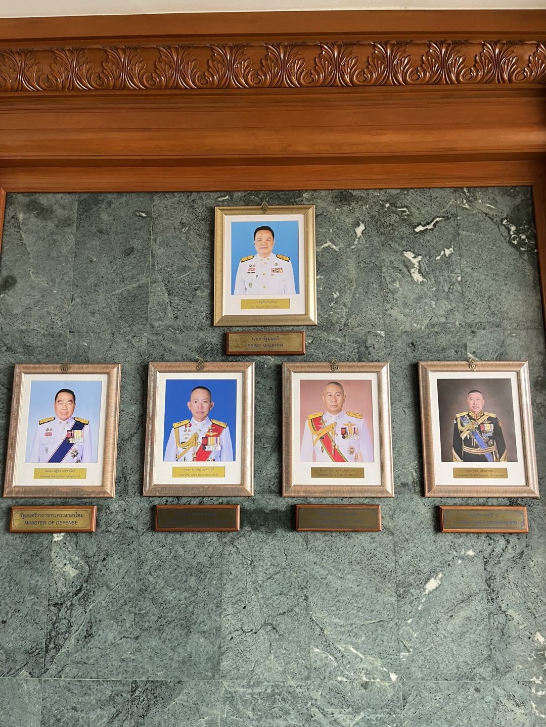 ในขณะที่บริเวณหน้าห้องพระบารมีปกเกล้า ซึ่งเป็นห้องรับรองของกองทัพภาคที่ 1 มีการนำรูปภาพของนายอนุทิน ชาญวีรกูล นายกรัฐมนตรี และรัฐมนตรีว่าการกระทรวงมหาดไทย, พล.อ. ณัฐพล นาคพาณิชย์ รัฐมนตรีว่าการกระทรวงกลาโหม, พล.อ. อุกฤษฎ์ บุญตานนท์ ผู้บัญชาการทหารสูงสุด (ผบ.ทสส.), พล.อ. พนา แคล้วปลอดทุกข์ ผู้บังคับบัญชาการทหารบก (ผบ.ทบ.) และพล.ท. วรยส เหลืองสุวรรณ แม่ทัพภาคที่ 1 ซึ่งเป็นภาพผู้บังคับบัญชาท่านใหม่มาติดตั้ง