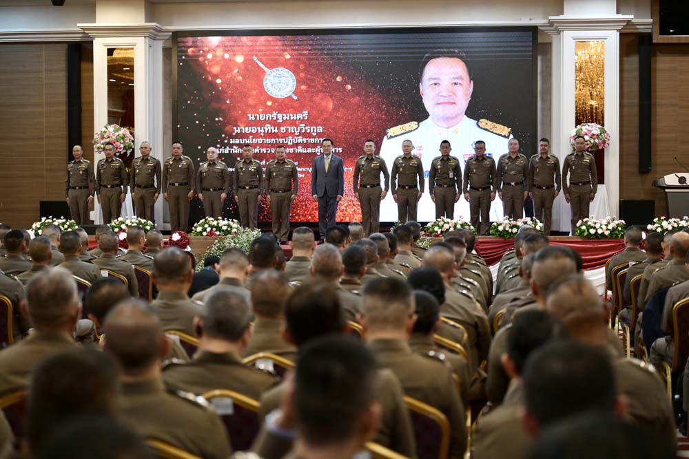 นายกรัฐมนตรี กล่าวว่า ทั้งนี้ปัญหายาเสพติดถือว่าเป็นภัย แต่ก็เป็นภัยที่ตำรวจควบคุมได้ ปัญหาพนันออนไลน์ อาชญากรข้ามชาติ ค้ามนุษย์ หลอกลวงประชาชน และอาชญากรรมทางเทคโนโลยี ล้วนแต่ส่งผลกระทบต่อชีวิตของพี่น้องประชาชน ยิ่งปล่อยให้สิ่งเหล่านี้เกิดขึ้น ตนถามว่าแล้วชีวิตพวกเราสบายขึ้นหรือไม่ ชีวิตพวกเรากลับยิ่งเครียดขึ้นเป็นลำดับ มีเรื่องนี้เมื่อไหร่ตำรวจโดนก่อนมหาดไทยแน่นอน เพราะจะเกิดคำถามว่าตำรวจทำไมไม่จับไม่ดำเนินการ สิ่งเหล่านี้จะเป็นปัญหาต่อไป ต้องมีการโยกย้ายเรียกตัวช่วยราชการ ไม่มีปัจจัยอะไรเลยที่เป็นบวกให้กับสำนักงานตำรวจแห่งชาติ นอกจากต้องมานั่งลงโทษกัน ดังนั้น สู้เราสร้างกลไกที่เป็นระดับสากล ไม่ว่าใครเข้ามาก็ขอให้ปฏิบัติตามกลไกนี้ และเชื่อว่ากลไกนี้จะต้องปราบอาชญากรรมต่างๆ ให้ได้ในระดับที่ไม่ถือว่าเป็นภัยคุกคามสูงสุดของประเทศ ส่วนเคสเล็กเคสน้อยถือว่าเป็นเรื่องปกติ แต่ต้องไม่ให้เป็นภัยที่ทำลายประเทศ และทำลายพี่น้องประชาชนให้เกิดความเสียหายอย่างมหาศาล