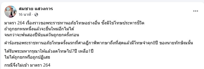 ทุบเปรี้ยงเคส‘ทักษิณ’ยื่น‘อภัยโทษ’ครั้งที่ 2 ไม่เข้ามาตรา264