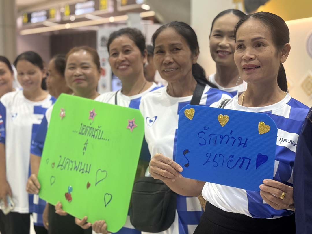 "นายกฯ"ถึงถิ่นนครพนม เตรียมเปิดงานไหลเรือไฟโลก ขณะ อสม.-ประชาชนแห่ต้อนรับสนามบินตะโกนรักนายกฯ
