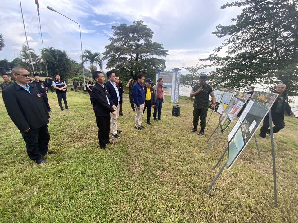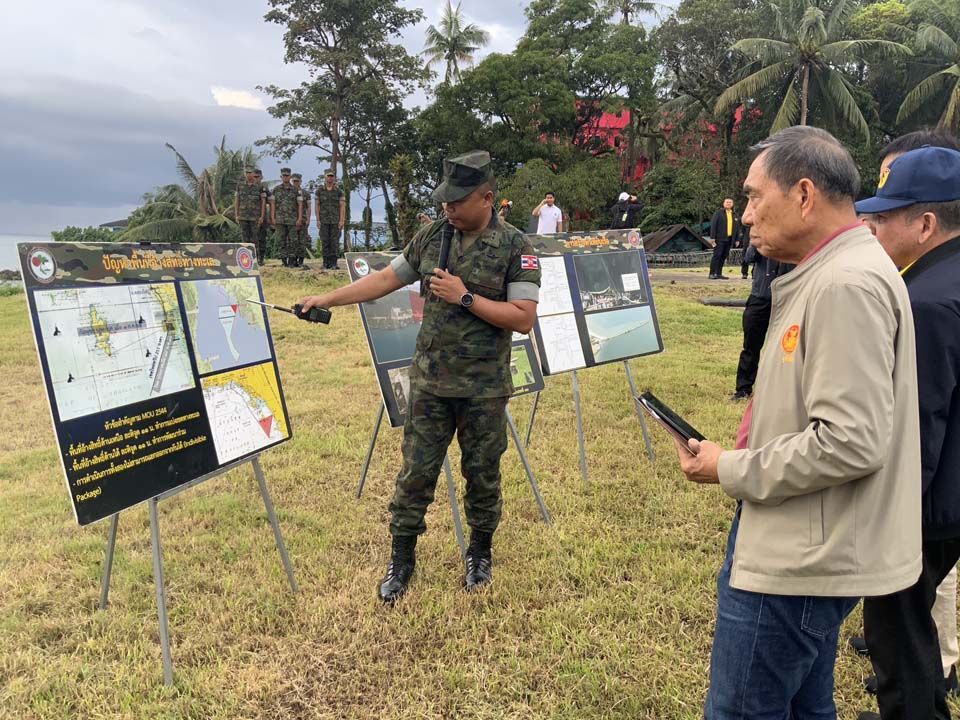 จากนั้น น.อ.ธรรมนูญ ได้บรรยายสรุปสภาพปัญหาต่างๆ โดยแสดงถึงปัญหาพื้นที่ทั้งทางบกและทางน้ำ เพื่อให้เกิดความเข้าใจ รวมทั้งชี้ให้เห็นถึงการละเมิด MOU 43 และ MOU 44 เพื่อให้เกิดความเข้าใจในสภาพปัญหาที่เกิดขึ้นทั้งหมดของทั้ง จ.จันทบุรี และ จ.ตราด โดยใช้แผนที่ด้านความมั่นคงได้อธิบาย รวมทั้งเรื่องสนธิสัญญาที่ฝรั่งเศสได้ทำร่วมกับฝ่ายไทยในการกำหนดเขตแดนขึ้น