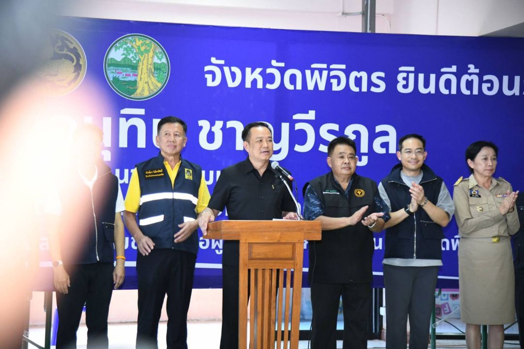 จากนั้นเวลา 14.00 น.นายกฯและคณะเดินทางถึงโรงเรียนเทศบาลตะพานหินวิทยาคาร ต.ตะพานหิน อ.ตะพานหิน จ.พิจิตร โดยมีนายวรโชติ สุคนธ์ขจร รมช.สาธารณสุข น.ส.ธนียา นัยพินิจ ผู้ว่าราชการจังหวัดพิจิตร นายเชษฐา โมสิกรัตน์ อธิบดีกรมป้องกันและบรรเทาสาธารณภัย นายพงษ์นรา เย็นยิ่ง อธิบดีกรมโยธาธิการและผังเมือง และสส.จากพรรคภูมิใจไทย ประกอบด้วย นายภัทรพงศ์ ภัทรประสิทธิ์ สส.พิจิตร เขต 1 นายวินัย ภัทรประสิทธิ์ สส.พิจิตรเขต 2 นายศิริวัฒน์ ขจรประศาสน์ สส.พิจิตร เขต 3 ร่วมให้การต้อนรับ