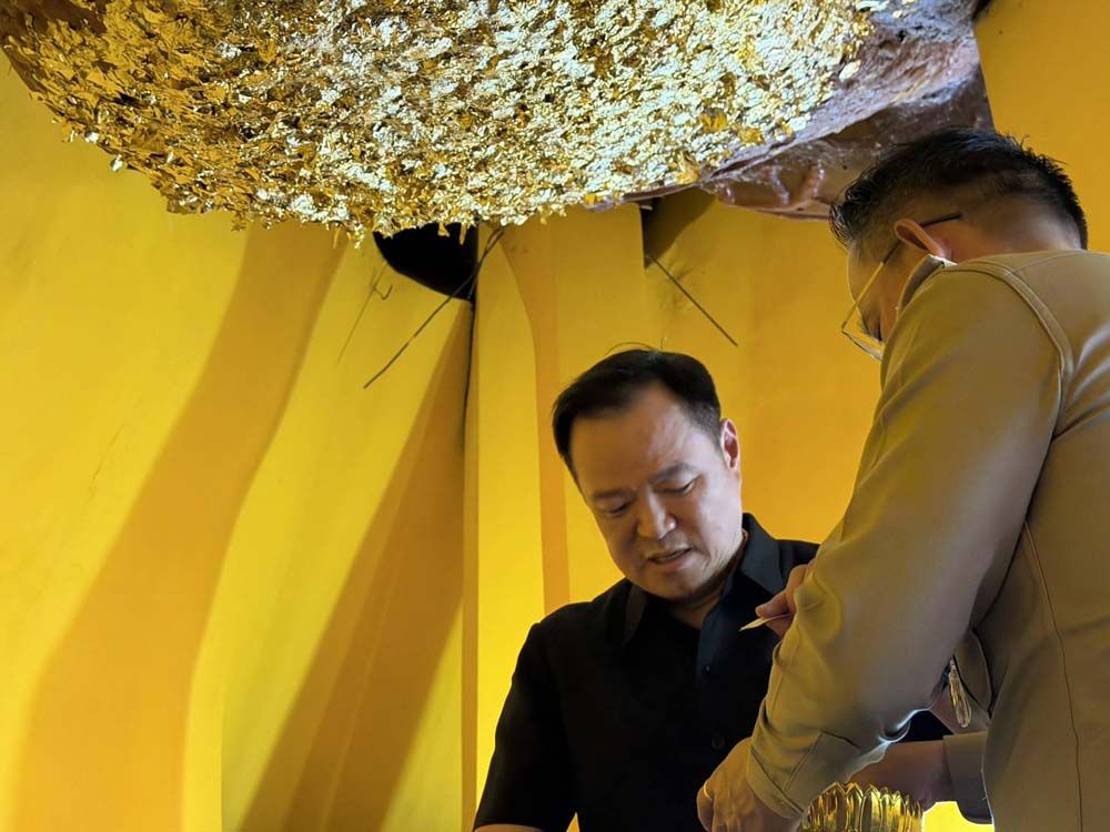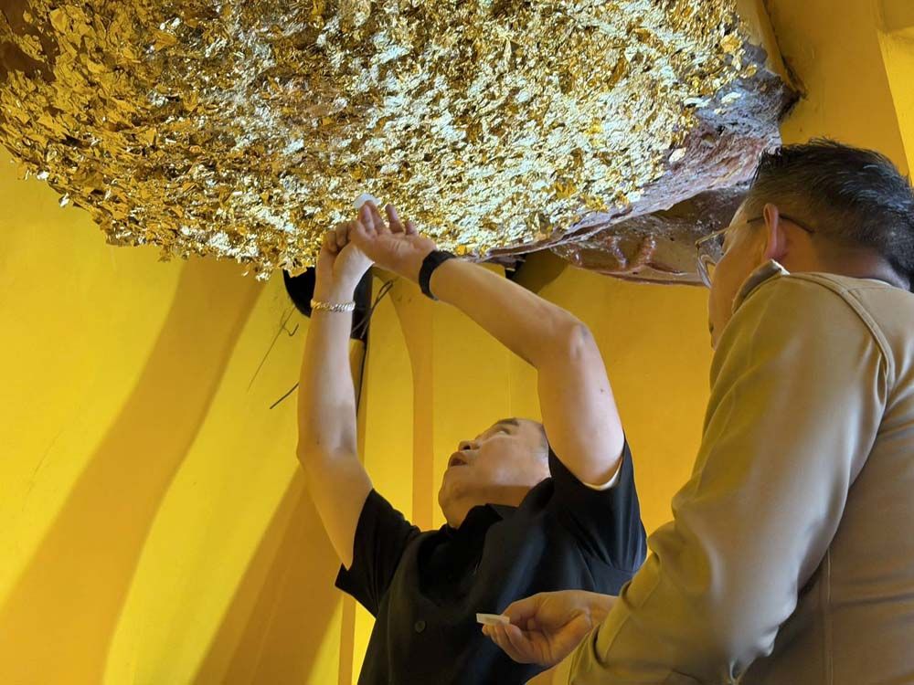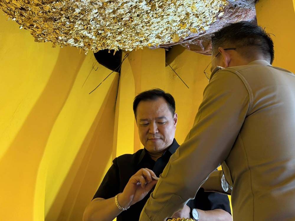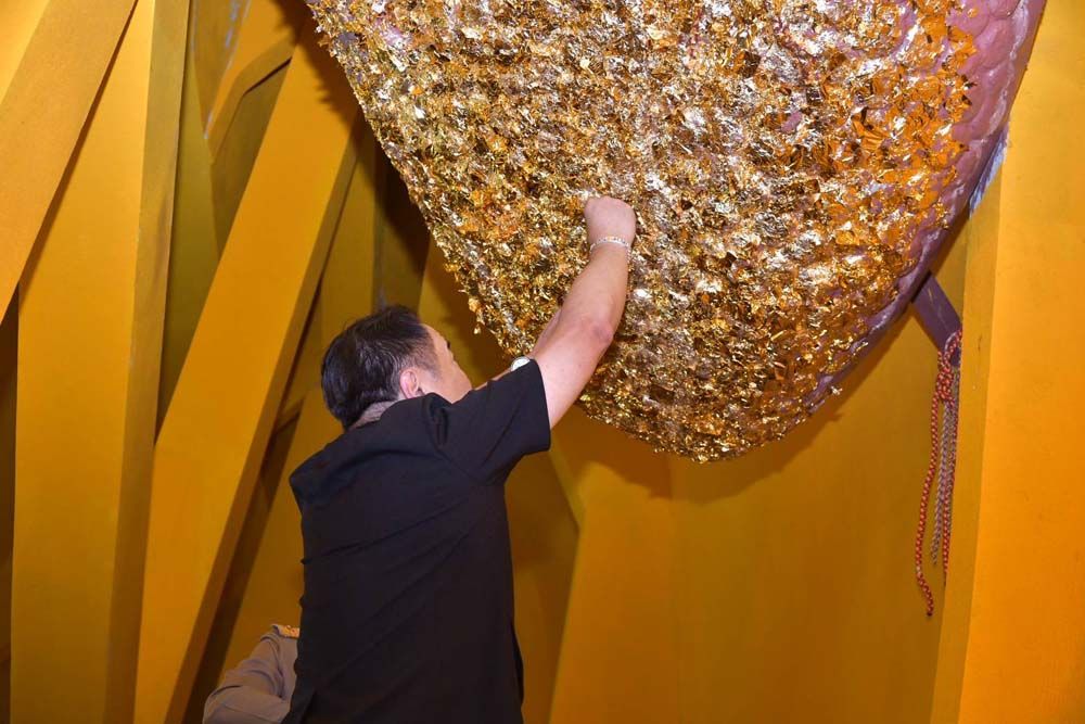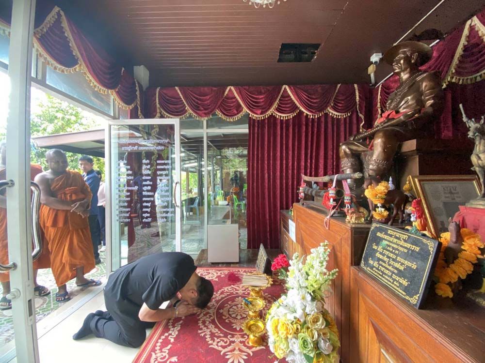 จากนั้น ได้เข้าไปปิดทองหัวใจพระนอน เพื่อความเป็นสิริมงคลแก่ตนเองและคณะ โดยได้เปิดเผยว่า ตนเองได้อธิฐานขอพรให้ประเทศไทยมีชัยชนะ ต่อผู้ที่ไม่ประสงค์ดี โดยปราศจากเงื่อนไข ทั้งเรื่องสถานการณ์ที่เกิดขึ้นในขณะนี้ และทุกอย่าง ใครไม่หวังดีกับประเทศไทยต้องพินาศ