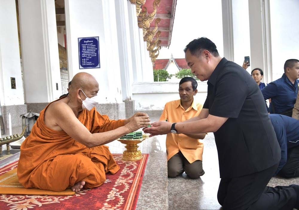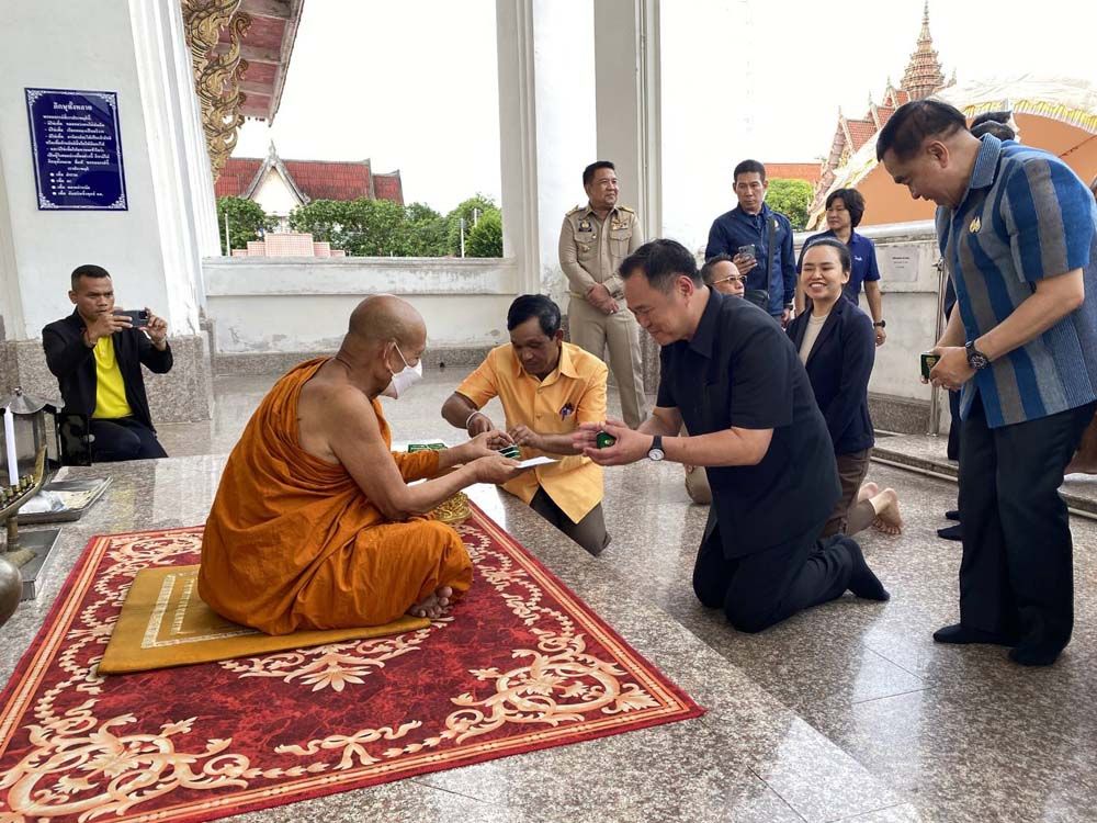 เมื่อถามต่อว่าได้ขอพรให้พรรคภูมิใจไทย ได้ สส. ทั้งจังหวัดหรือไม่ นายกรัฐมนตรี กล่าวว่า ไม่ได้ขอพรเรื่องการเมืองเลย