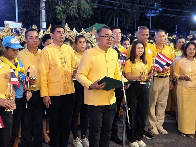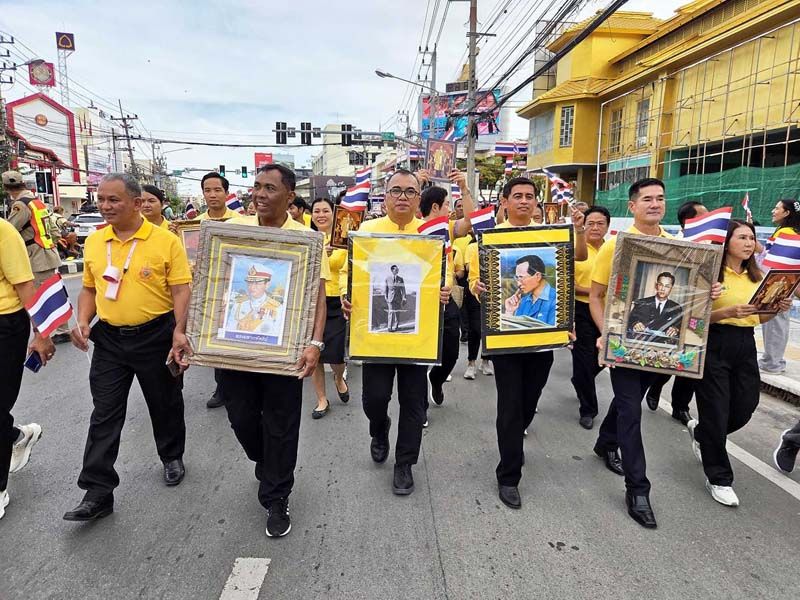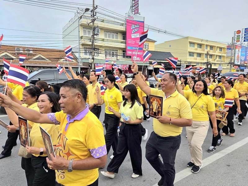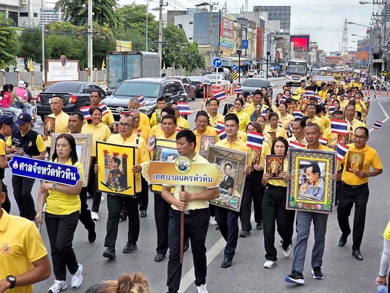 เมื่อเวลา 17.00 น.วันที่ 13 ต.ค.68 นายประสูตร หอมบรรเทิง นายอำเภอหัวหิน จ.ประจวบฯ นายนพพร วุฒิกุล นายกเทศมนตรีนครหัวหิน พร้อมด้วยคณะผู้บริหารเทศบาล ศาลจังหวัดหัวหิน หน่วยงานราชการ องค์กรปกครองส่วนท้องถิ่น หน่วยงานภาครัฐ-เอกชน พลังมวลชน และประชาชนสวมเสื้อเหลืองกว่า 1 พันคน ร่วมกิจกรรม “เดินด้วยใจไปบ้านพ่อ” ถือธงชาติและพระบรมฉายาลักษณ์ พระบาทสมเด็จพระบรมชนกาธิเบศร มหาภูมิพลอดุลยเดชมหาราช บรมนาถบพิตร จากหน้าสำนักงานเทศบาลนครหัวหินไปยังหน้าวังไกลกังวล ที่ชาวหัวหินขนานนามว่า “บ้านของพ่อ” รวมระยะทาง 1.5 กม. เพื่อน้อมรำลึกถึงพระมหากรุณาธิคุณของ “ในหลวงรัชกาลที่ 9” เนื่องใน "วันนวมินทรมหาราช" ครบรอบ 9 ปี แห่งการเสด็จสวรรคต