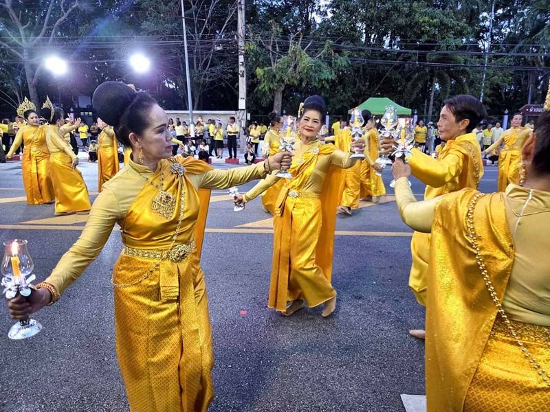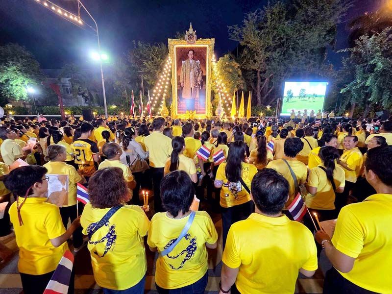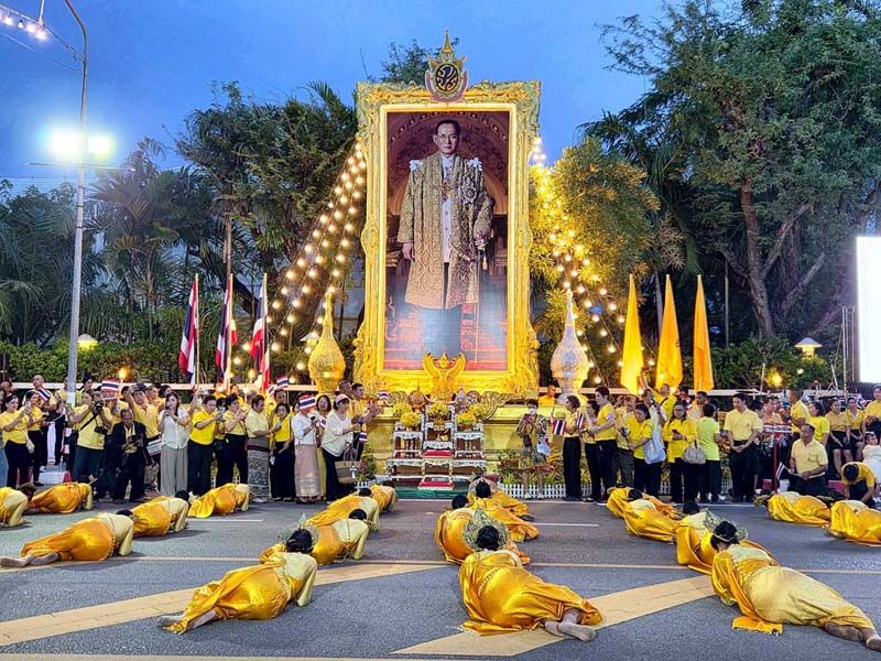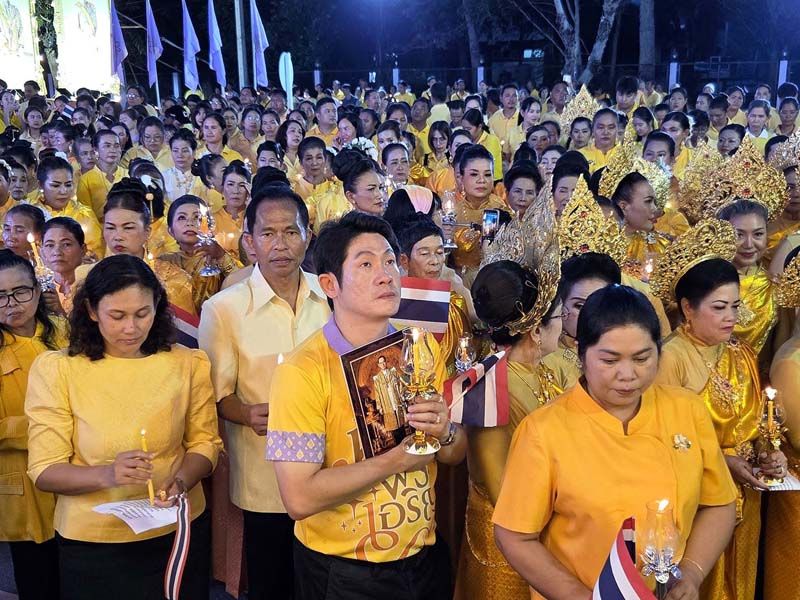 นางรำนับร้อยชีวิต รำเทียนน้อมรำลึก “ในหลวง ร.9” หน้าวังไกลกังวล ในวันนวมินทรมหาราช
