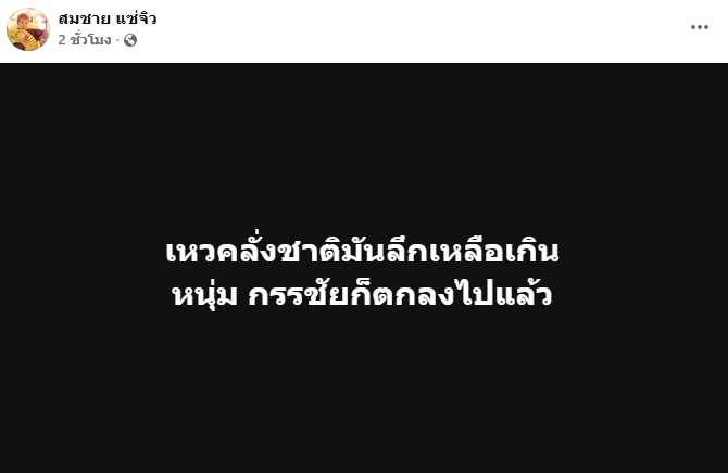 15 ต.ค. 68 นายสมชาย แซ่จิว นักประวัติศาสตร์และวัฒนธรรมจีน ได้โพสต์เฟซบุ๊กระบุข้อความว่า "เหวคลั่งชาติมันลึกเหลือเกิน หนุ่ม กรรชัยก็ตกลงไปแล้ว"