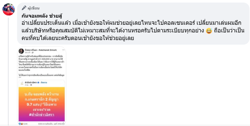 หลังจากที่ ไอซ์ รักชนก ศรีนอก สส.กรุงเทพฯ พรรคประชาชน โพสต์เฟซบุ๊กที่แสดงความคิดเห็นต่อข่าว บ.กัน จอมพลัง คว้างาน ก.เกษตรฯอีก 2 สัญญา 9.7 แสน / ‘วิธีเฉพาะเจาะจง’รวด