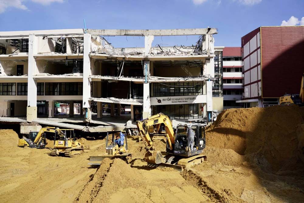 4. เร่งถมทราย มากกว่าหกพันลูกบาศก์เมตร เพื่อให้ถึงระดับผิวถนน ก่อนบดอัดหินคลุก สร้างพื้นชั่วคราว ให้เครื่องจักรใหญ่เข้าทำงาน "รื้อสถานีตำรวจสามเสน" เพื่อความปลอดภัย