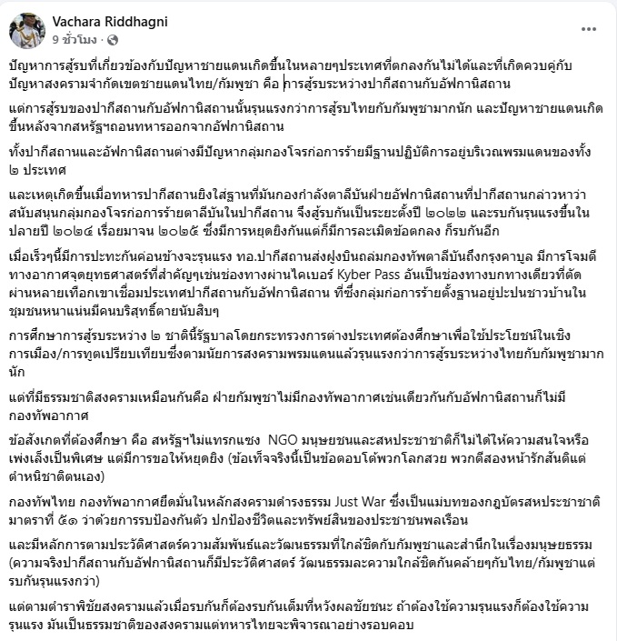 17 ตุลาคม 2568 พลอากาศโทวัชระ ฤทธาคนี หรือ “เสธ.นิด” อดีตนายทหารนักบินกองทัพอากาศ โพสต์ข้อความบนเฟซบุ๊ก Vachara Riddhagni ระบุว่า...