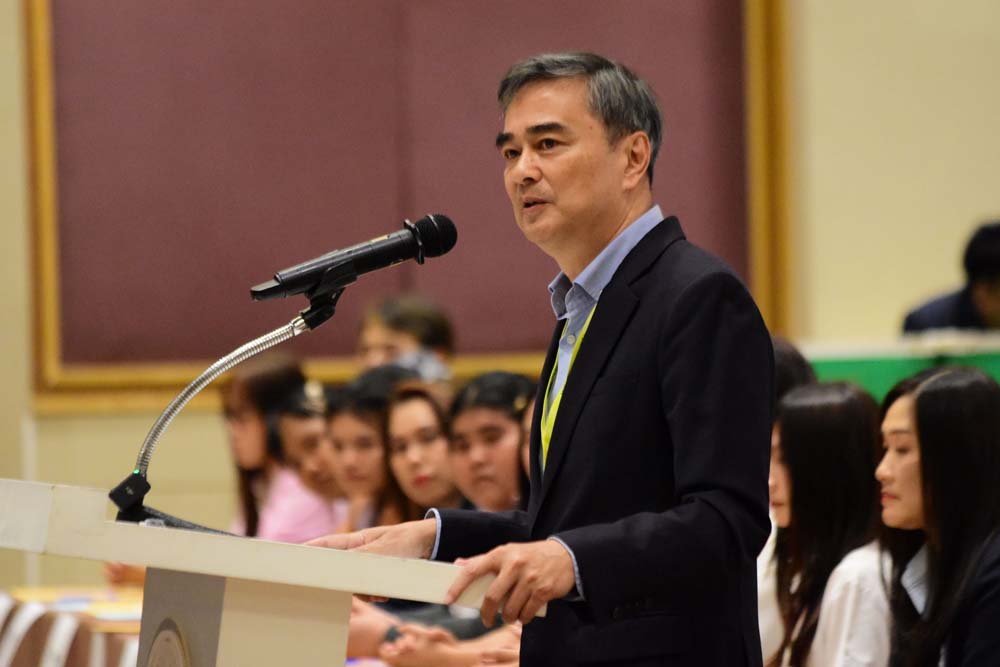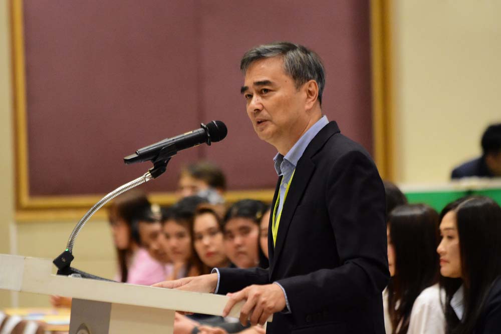 นายอภิสิทธิ์ กล่าวว่า วันนี้เราต้องไม่เอาองค์กรอย่างกองทัพ เข้ามาเป็นประเด็นทางการเมือง กองทัพจะทำหน้าที่ได้อย่างไร ถ้าพรรคการเมืองมีอคติกับกองทัพ และกองทัพเวลากป้องแผ่นดินไทยอย่างเข้มแข็ง การเมืองไปโหนไม่ได้ การเมืองต้องช่วยสนับสนุนโดยการดำเนอนการนโยบายการต่างประเทศ การทูตเชิงรุก เพื่อให้การทำงานของทหารและกองทัพทำได้อย่างมีประสิทธิภาพ และสบายใจมากยิ่งขึ้น เราไม่ควรนำเรื่องความมั่นคงของประเทศ หรือนโยบายการต่างประเทศมาเสี่ยง ผลักภาระให้ประชาชนลงประชามติ อย่าบอกว่าประชาชนจะเข้าใจหรือไม่ ตนยังไม่แน่ใจคนที่คิดให้ถาม ตัวเองเข้าใจหรือยัง เราจะปล่อยให้การเมืองที่ฉุดรั้งทุกสิ่งทุกอย่างจากการทุจริตคอร์รัปชั่นเดินต่อไปไม่ได้ ถ้าประชาธิปไตย ไม่ได้เริ่มต้นด้วยการเลือกตั้งที่สุจริตเที่ยงธรรม แต่เป็นการประมูลซื้อเสียงซื้อสส. คอร์รัปชั่นกัดเซาะไปทุกองค์กร เป็นต้นทุนมหาศาล ไม่ใช่แค่ตัวเงิน แต่ความไว้วางใจซึ่งกันและกันของคนในสังคมที่จะถูกทำลาย และนำมาสู่กฎระเบียบกติกาที่ซับซ้อนยุ่งยากดพื่อพยายามแก้ไขสิ่งนี้ แต่กลายเป็นเปิดช่องให้ทุจริตช่องทางใหม่ไม่จบสิ้น